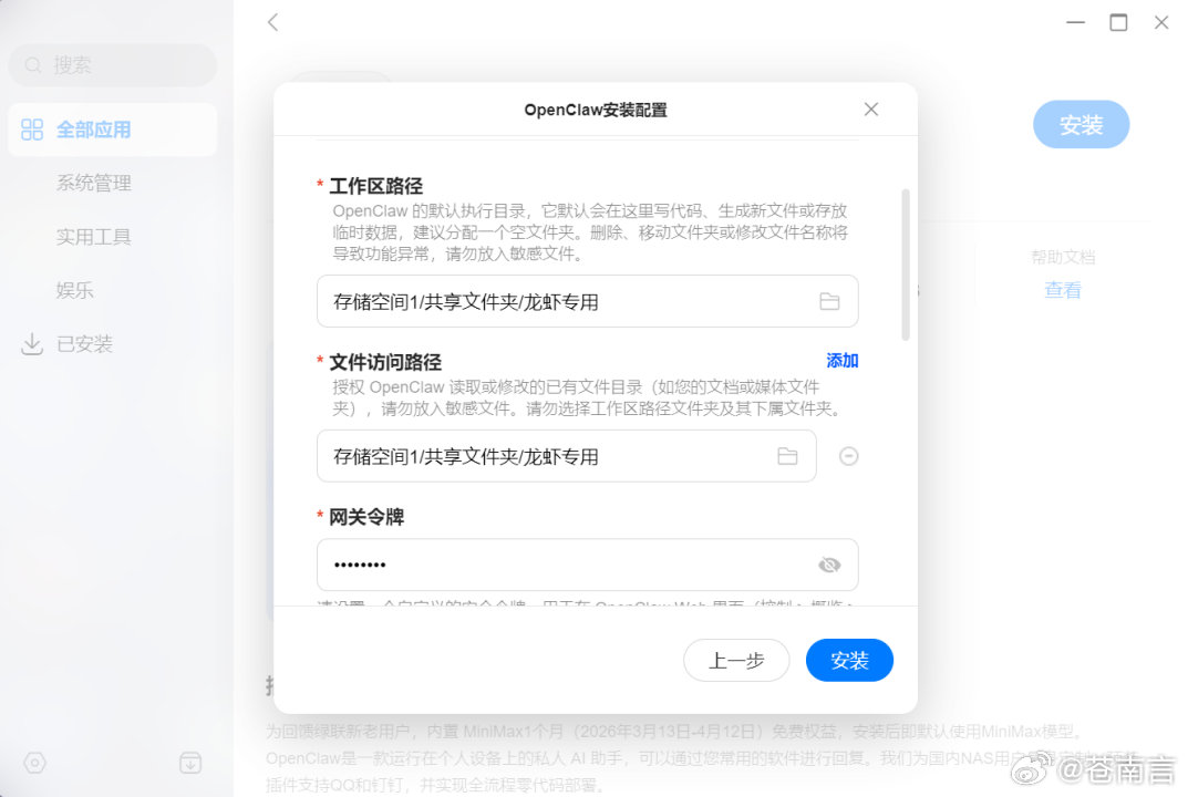 最近真是全网都在养龙虾啊,本来我也想凑个热闹试试,结果一看操作太复杂直接劝退,另一方面也是担心隐私泄露那些问题。不过好巧不巧,我家里有一台 绿 联 DXP4800 Plus,刚好前段时间 绿 联 和MiniMax官宣合作了,直接就在UGOS Pro系统的应用中心上架了OpenClaw,这不是把养龙虾门槛直接拉到最低嘛! openclaw