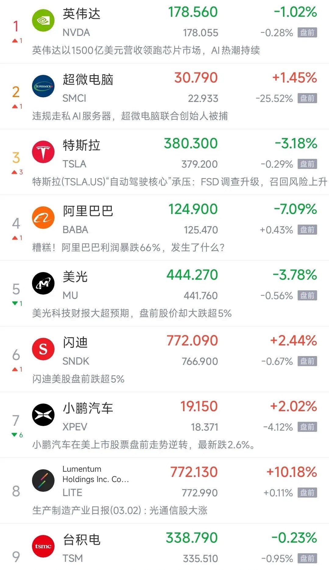 美股今天晚上这是要搞事情,原油也救不了了吗?今天A股大跌,主要就是白天原油价格突破了105美元,这让市场无限恐慌。但是晚上布伦特原油已经跌到了103美元以下,但是美股盘前并不乐观,纳斯达克指数期货目前跌超5%,而英伟达盘前跌0.28%,苹果盘前跌0.78%,谷歌盘前跌0.64%。