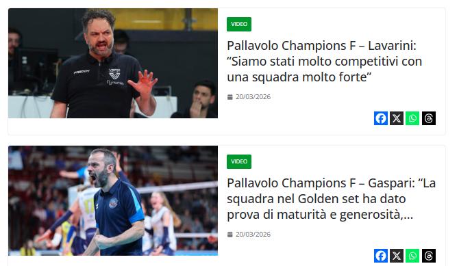 欧冠比赛日:失意的米兰与得意的斯坎,赛后主教练访谈: 米兰主教练拉瓦里尼:"我们与一支非常强大的队伍竞争得非常激烈。很遗憾,我们输了"。 斯坎主教练加斯帕里:"我们在金局制中展示了成熟和无畏的精神,球员们为每一球而战"。 来源:电子排球杂志