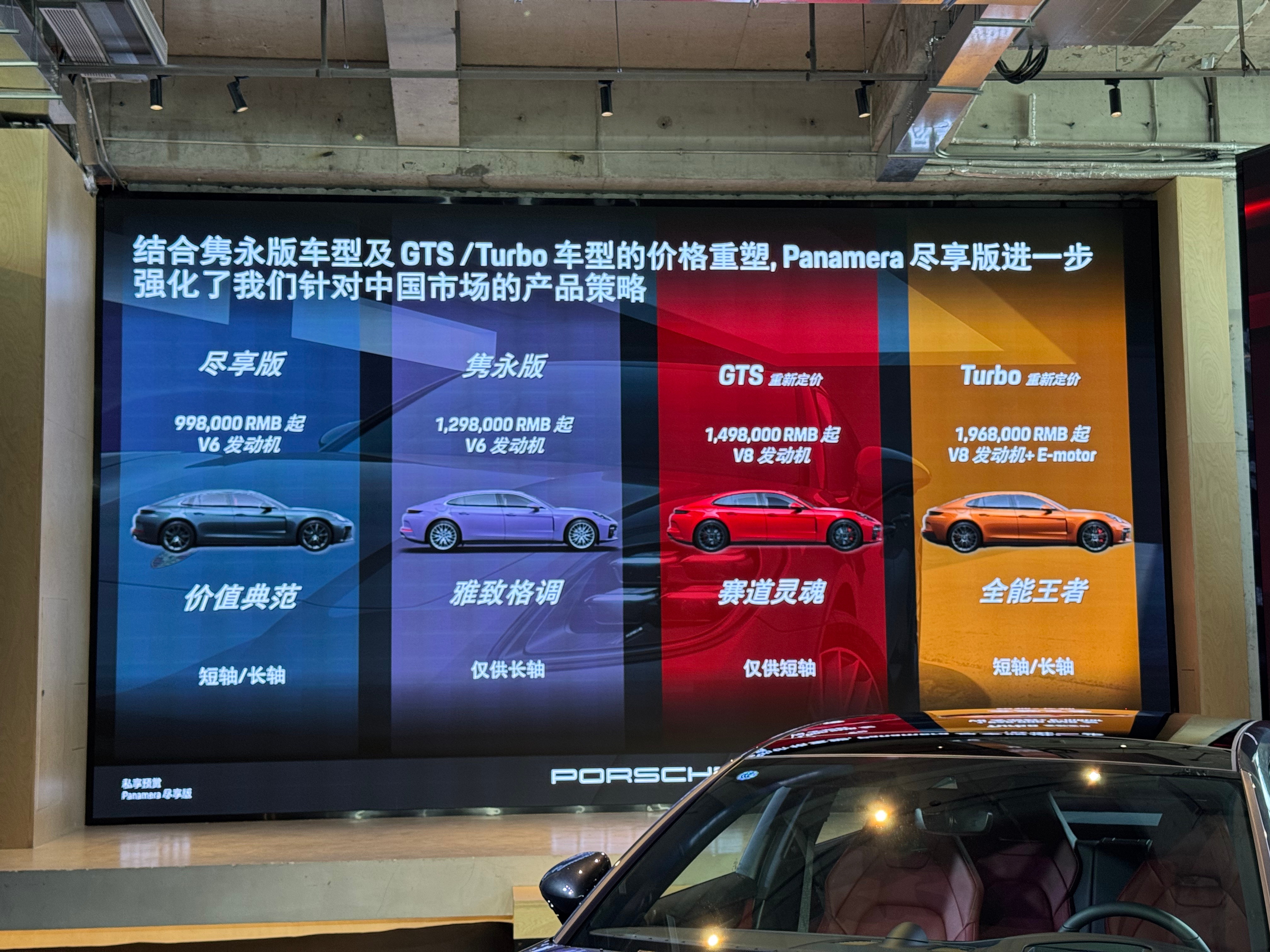 保时捷Panamera尽享版正式发布,直接把帕拉梅拉门槛价格带入百万内,尽享版99.8万起;隽永版129.8万起;GTS 149.8万起;Turbo版196.8万起,相当的刺激!不过呢,价格虽然下探,并不以为意味着减配缩水。新车内饰质感与操控底蕴依旧在线,每一处细节都透着保时捷的精致与运动,看一眼,你依然会心动到无法自拔!