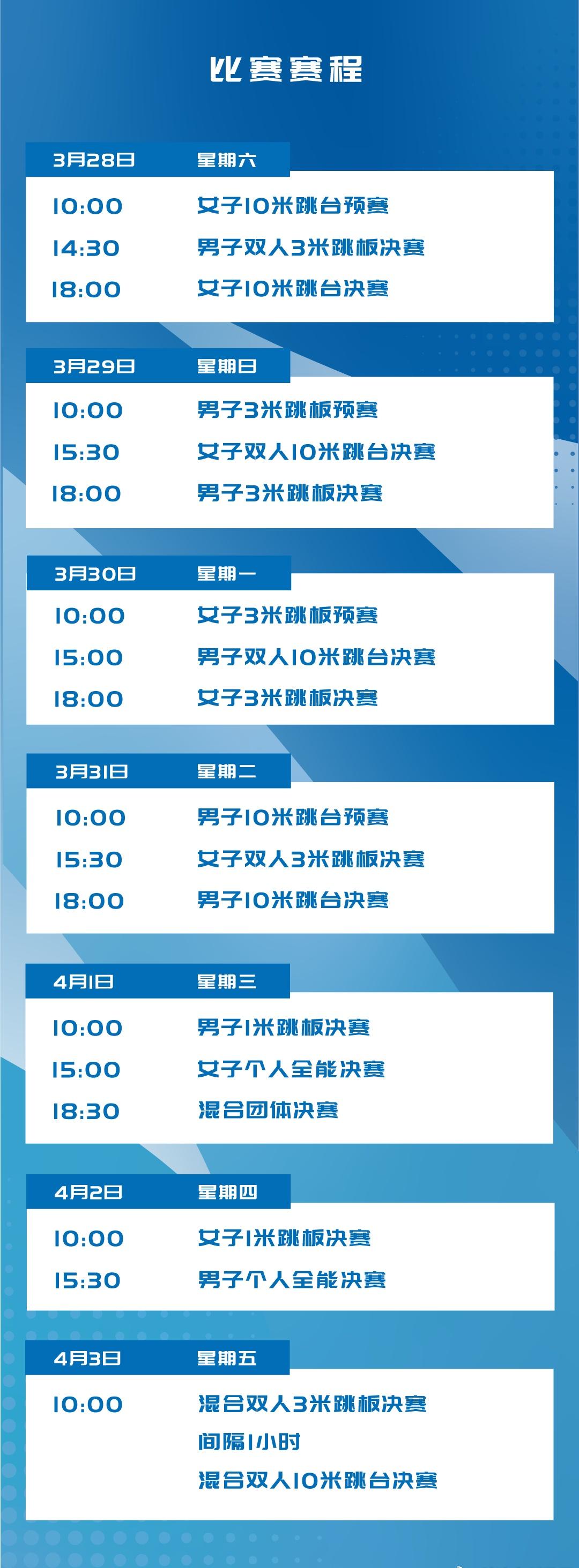 由国家体育总局游泳运动管理中心、中国跳水协会主办的“浩沙FAFA杯”2026年全国青年跳水冠军赛将于3月28日至4月3日在晋江第二体育中心举行!