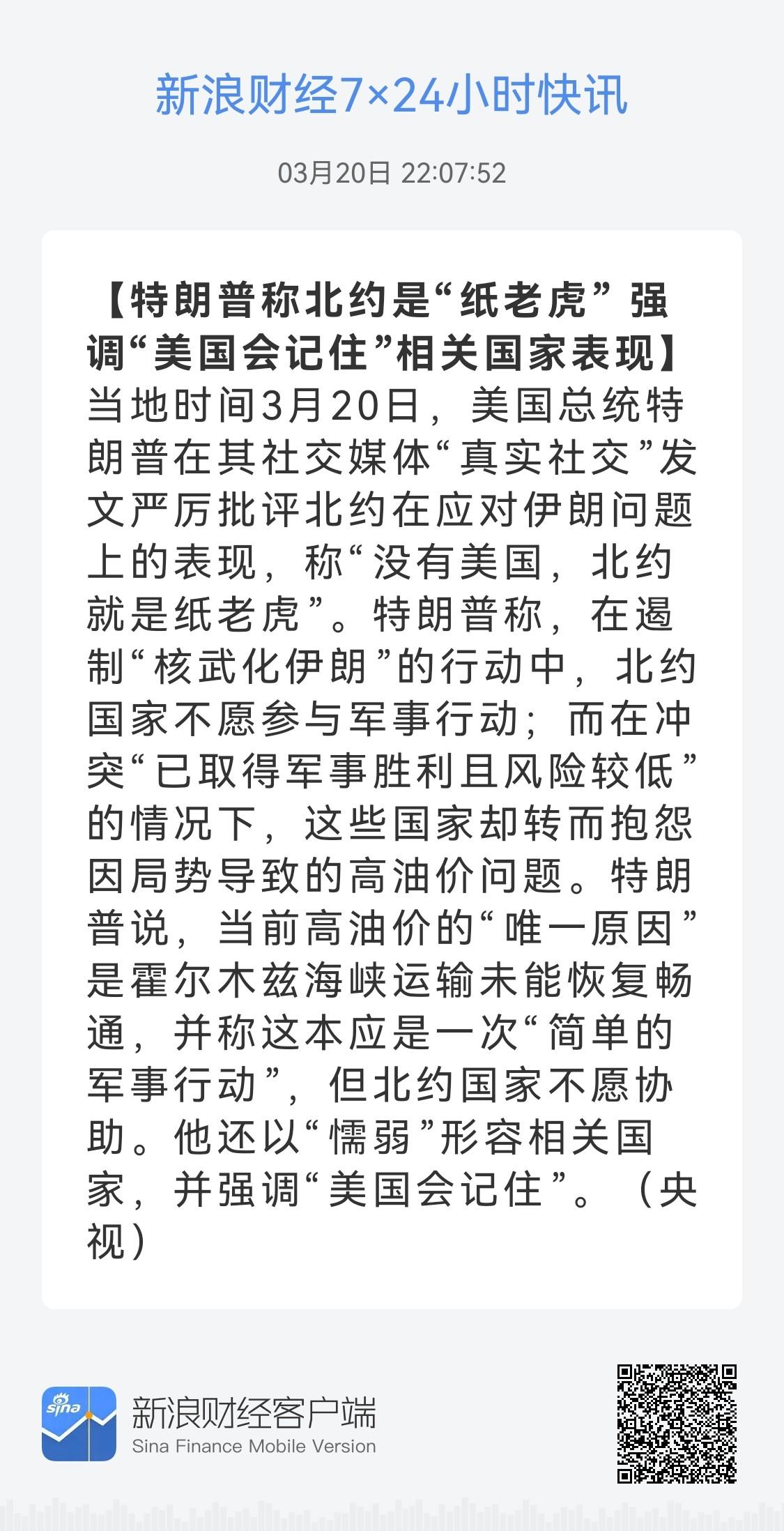 特朗普悲伤的时候又想起谁 不争气的欧盟 美以对伊朗动武会有哪些影响 美伊冲突是否会升级为全面战争 美伊冲突是否会升级为全面战争 和平时期:特朗普对欧盟极尽羞辱,甚至让他们叫“Daddy”;还要收他们关税;还要他们加大国防投入,卖美国武器给他们赚钱 战争时期:你们为什么不愿参加军事行动,陪我一起挨揍。你看看美国在海湾地区的军事基地被强拆成啥样。 为什么发怒,1)库存即将耗尽。武器专家说1个月是期限。2)连走个形势都不愿意。甚至特朗普还说哪怕做做样子,发个声明实际不参与也行,就当是精神鼓励!但,人家还是不愿意,毕竟开战没和人家商量,甚至通知一下都懒得做,而且还师出无名。 背景新闻:央视国际时讯 当地3月20日,美国总统特朗普在其社交媒体真实社交发文严厉批评北约,在遏制"核武化伊朗"的行动中,北约国家不愿参与军事行动。当地3月19日,美国消费者新闻与商业频道一段采访,德国军工业巨头莱茵金属防务公司CEO阿明·帕佩格指出,目前欧洲、美国和中东地区的导弹库存几乎枯竭,对导弹和防空系统的需求巨大,如果美乙伊战争再持续一个月,导弹储备就会耗尽。 (图片源自网络侵权告知删除)