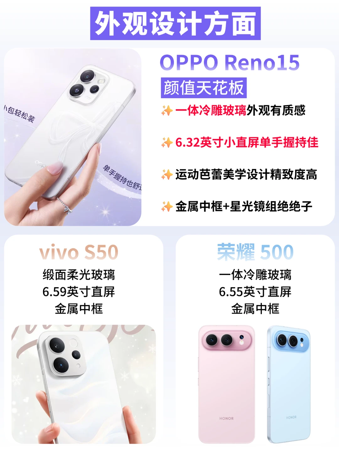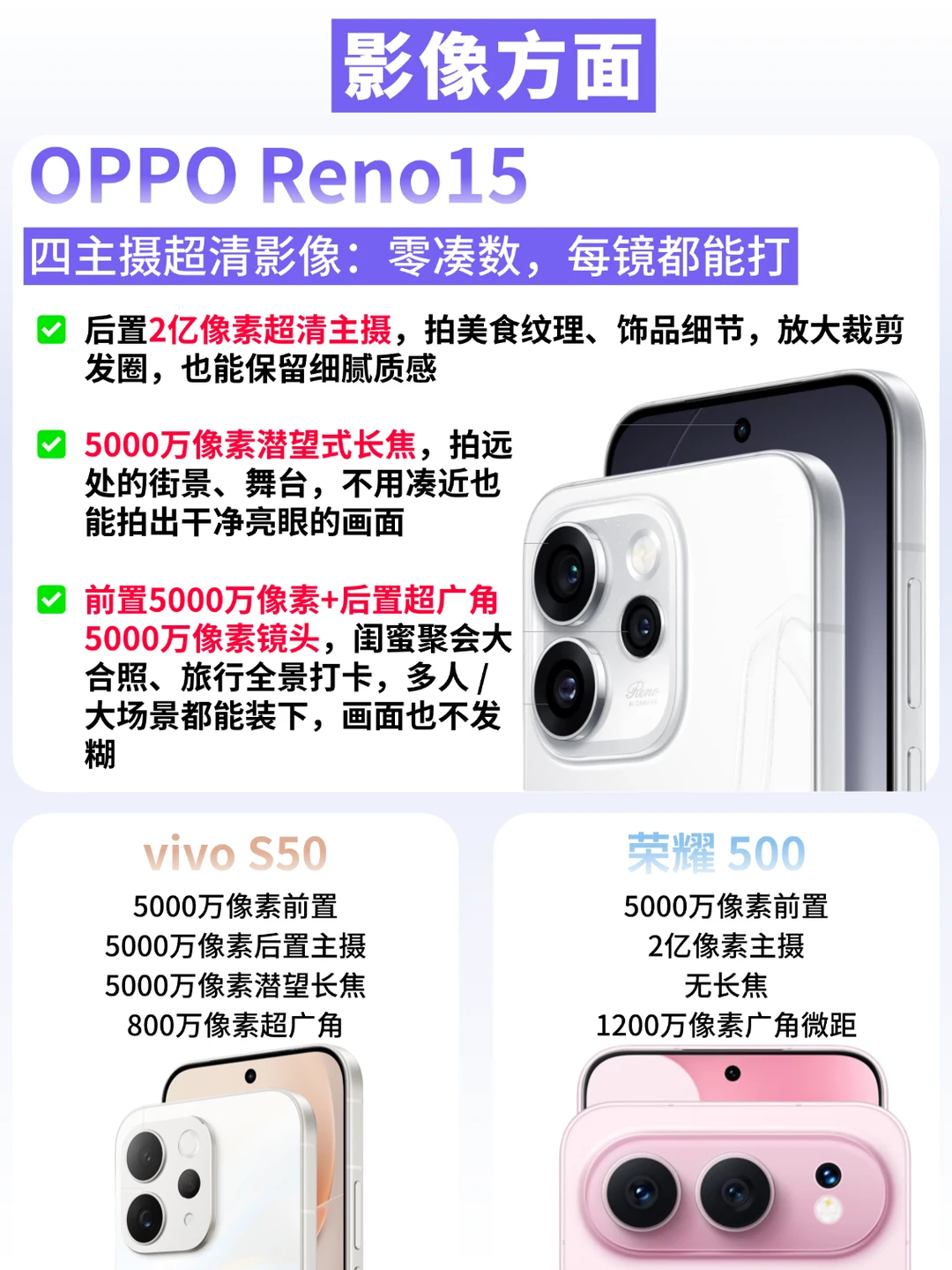 纠结 OPPO Reno15/vivo S50 / 荣耀 500 的宝子速来!扒完三款新机直接锁死 Reno15,可以说是把“颜值 + 影像 + 实用”焊在了一起~