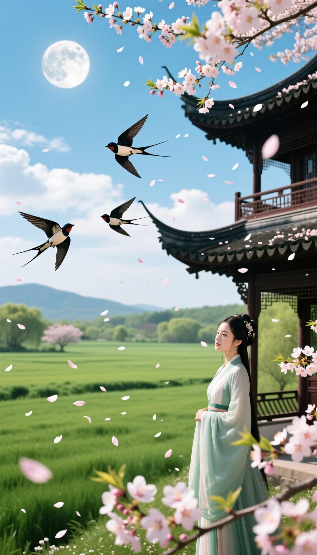 徐铉《春分日》(五代) 原文 仲春初四日,春色正中分。 绿野徘徊月,晴天断续云。 燕飞犹个个,花落已纷纷。 思妇高楼晚,歌声不可闻。 赏析 - 开篇“春色正中分”,直点节气核心:昼夜均分、春色过半。 - 写景清丽:月下绿野、晴云断续,动静相宜;燕归、花落,一盛一衰,暗合春分“平衡”之美。 - 末句由景入情,思妇高楼独歌,无人听闻,在明媚春光里藏着淡淡怅惘,意境悠远。 🌿 欧阳修《踏莎行·雨霁风光》(宋) 原文 雨霁风光,春分天气。千花百卉争明媚。 画梁新燕一双双,玉笼鹦鹉愁孤睡。 薜荔依墙,莓苔满地。青楼几处歌声丽。 蓦然旧事上心来,无言敛皱眉山翠。 赏析 - 上阕写雨后春分盛景:百花争艳、新燕成双,画面明媚热闹。 - 以“双燕”反衬“孤鹦鹉”,乐景写哀,埋下孤寂伏笔。 - 下阕由景入情,薜荔莓苔、青楼歌声,勾起旧事,终以“无言敛眉”收束,将春日闲愁写得细腻深沉。 🌿 元稹《春分二月中》(唐) 原文 二气莫交争,春分雨处行。 雨来看电影,云过听雷声。 山色连天碧,林花向日明。 梁间玄鸟语,欲似解人情。 赏析 - 开篇点出春分“阴阳平衡、二气调和”的哲理。 - 精准写春分三候:闪电、雷声、玄鸟(燕子)归来,物候细节拉满。 - 山色连天、林花向日,燕语似解人意,一派生机与和谐,充满生活气息。 🌿 苏轼《癸丑春分后雪》(宋) 原文 雪入春分省见稀,半开桃李不胜威。 应惭落地梅花识,却作漫天柳絮飞。 不分东君专节物,故将新巧发阴机。 从今造物尤难料,更暖须留御腊衣。 赏析 - 写春分后罕见降雪的奇景,“省见稀”突出反常。 - 以“柳絮”喻春雪,比喻新奇;桃李不敌雪威,反衬梅花坚韧。 - 由自然无常引申人生际遇,暗含哲思:世事难料,即便天暖,仍需留冬衣,警醒意味深长。 🌿 唐寅《一剪梅·雨打梨花深闭门》(明) 原文 雨打梨花深闭门,忘了青春,误了青春。 赏心乐事共谁论?花下销魂,月下销魂。 愁聚眉峰尽日颦,千点啼痕,万点啼痕。 晓看天色暮看云,行也思君,坐也思君。 赏析 - 以春分雨打梨花为背景,写深闺思念。 - 叠词与反复,强化青春虚度、无人共赏的孤寂。 - 末句直抒胸臆:朝暮看云、行坐皆思,把思念写得刻骨执着,春分柔景更衬深情。