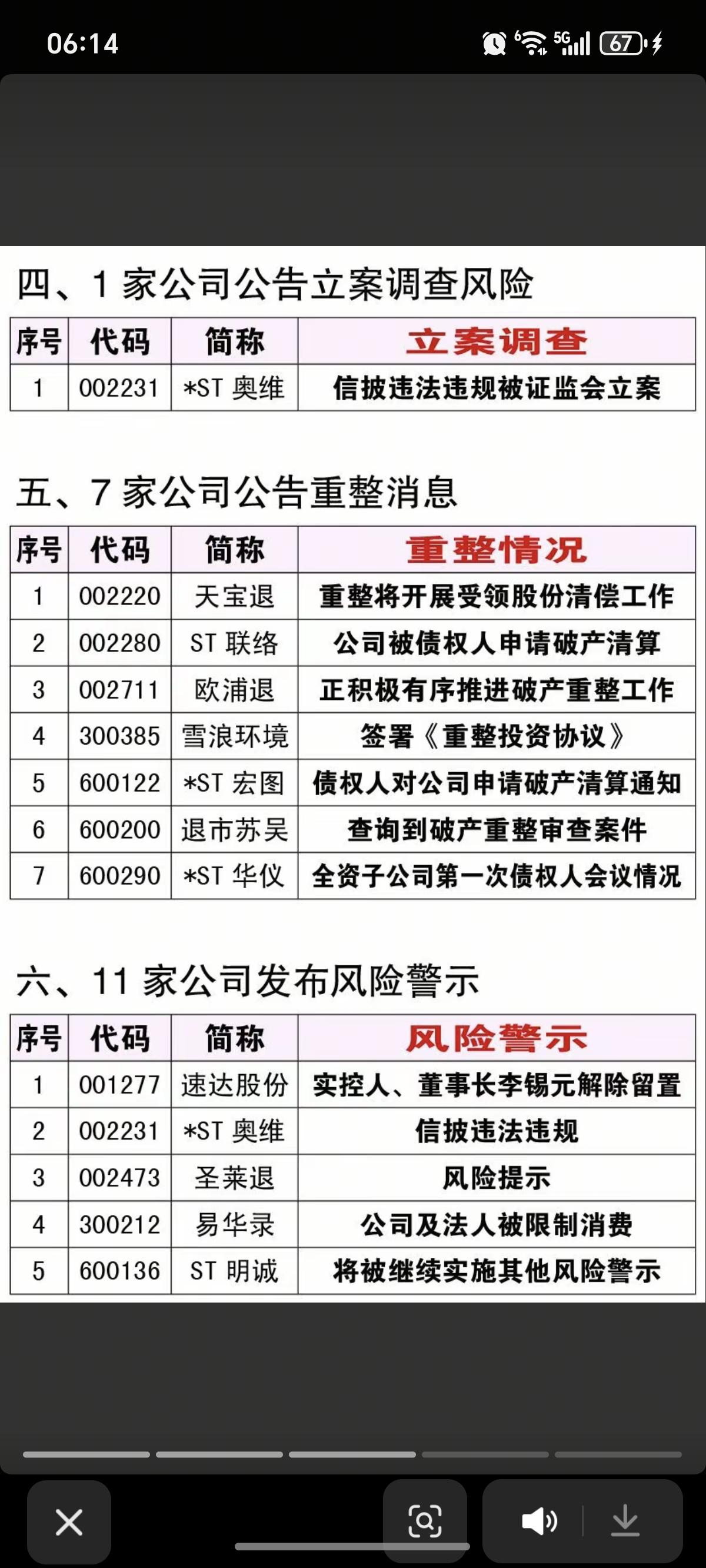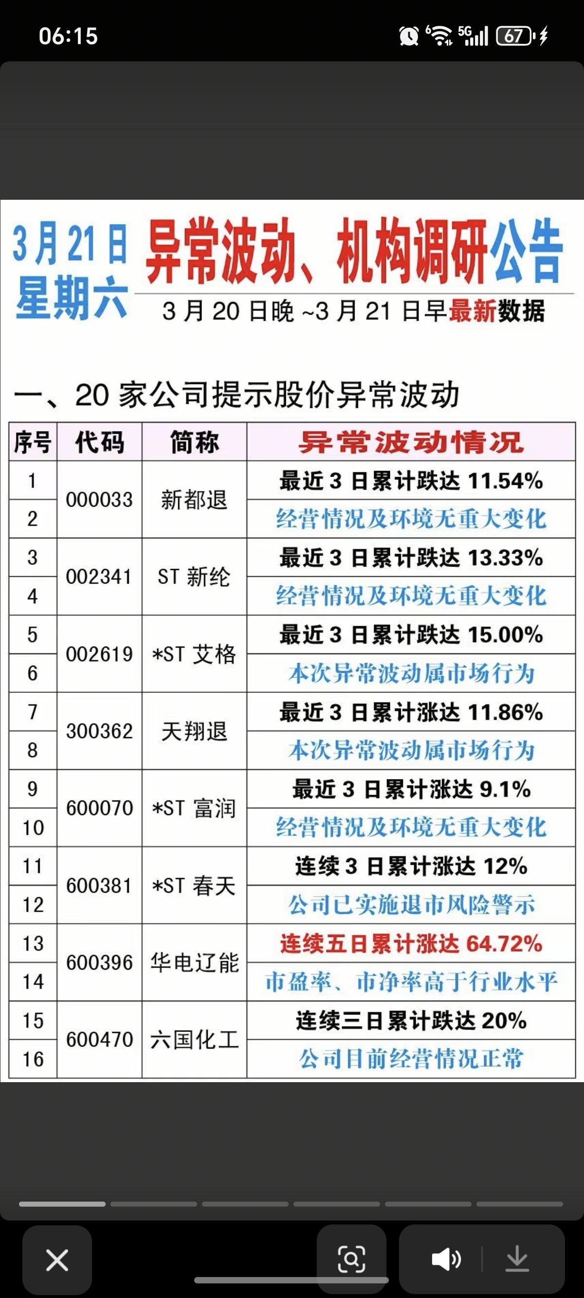3.21周六 上市公司利空消息汇总! 主要涉及: 18家公司提示终止上市风险 4家公司提示退市风险 2家公司申请撤销退市警示 11家公司发布风险警示 7家公司公告重整消息 20家公司股价异动,52家机构调研