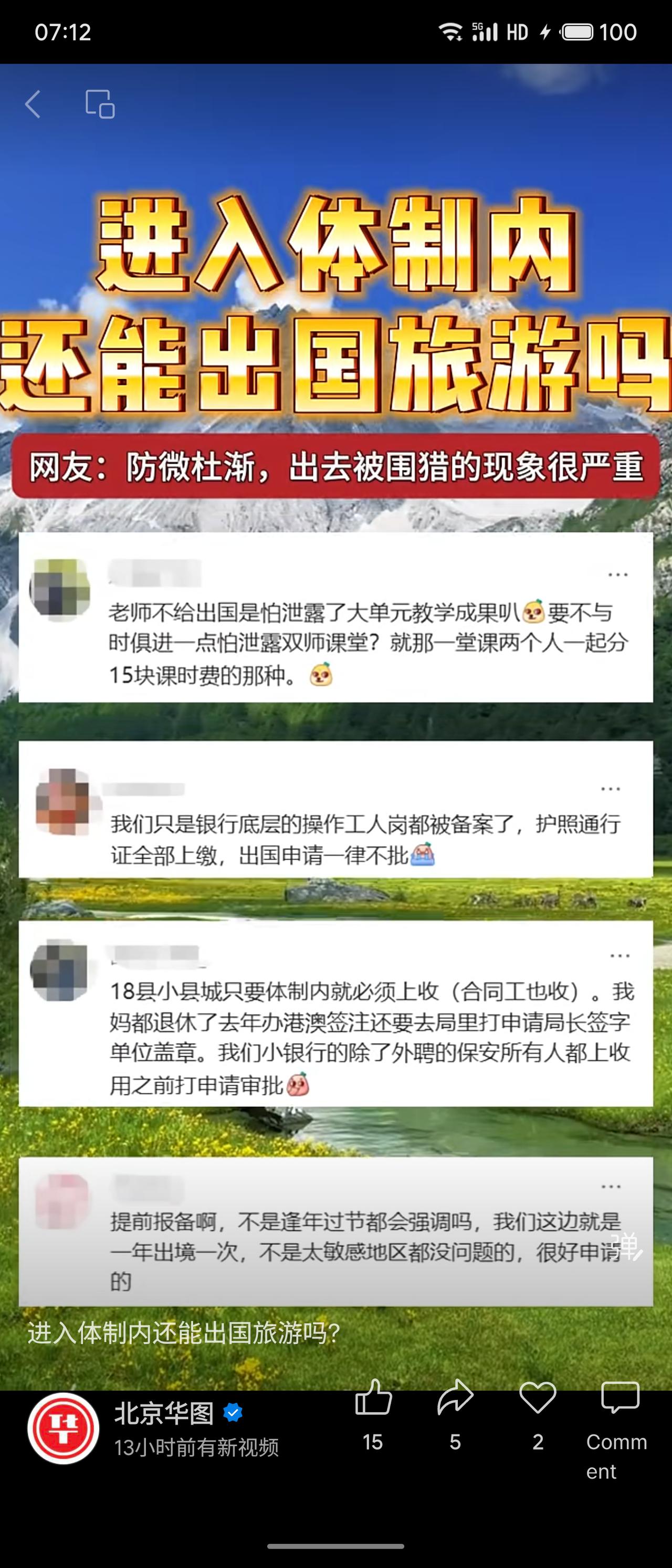 今年春天最想实现的心愿网友讨论“体制内能否出国旅游”。评论显示,多数体制内及银行