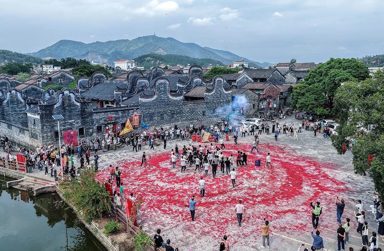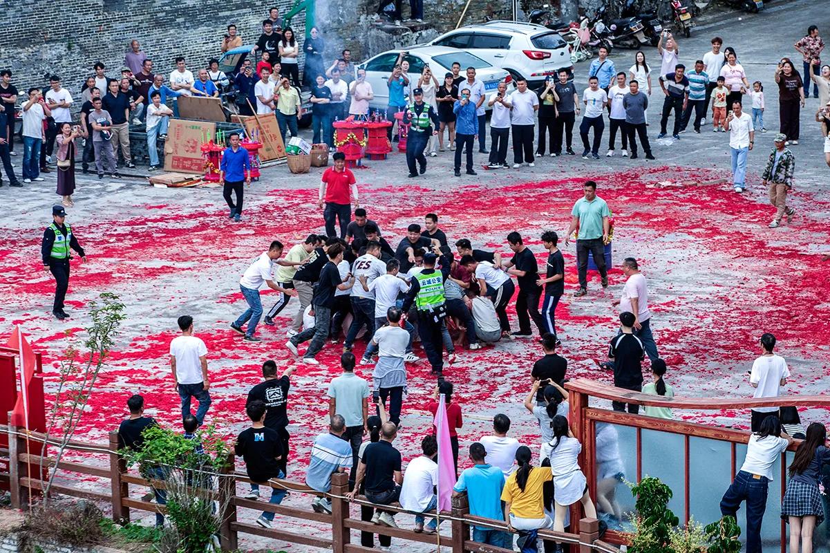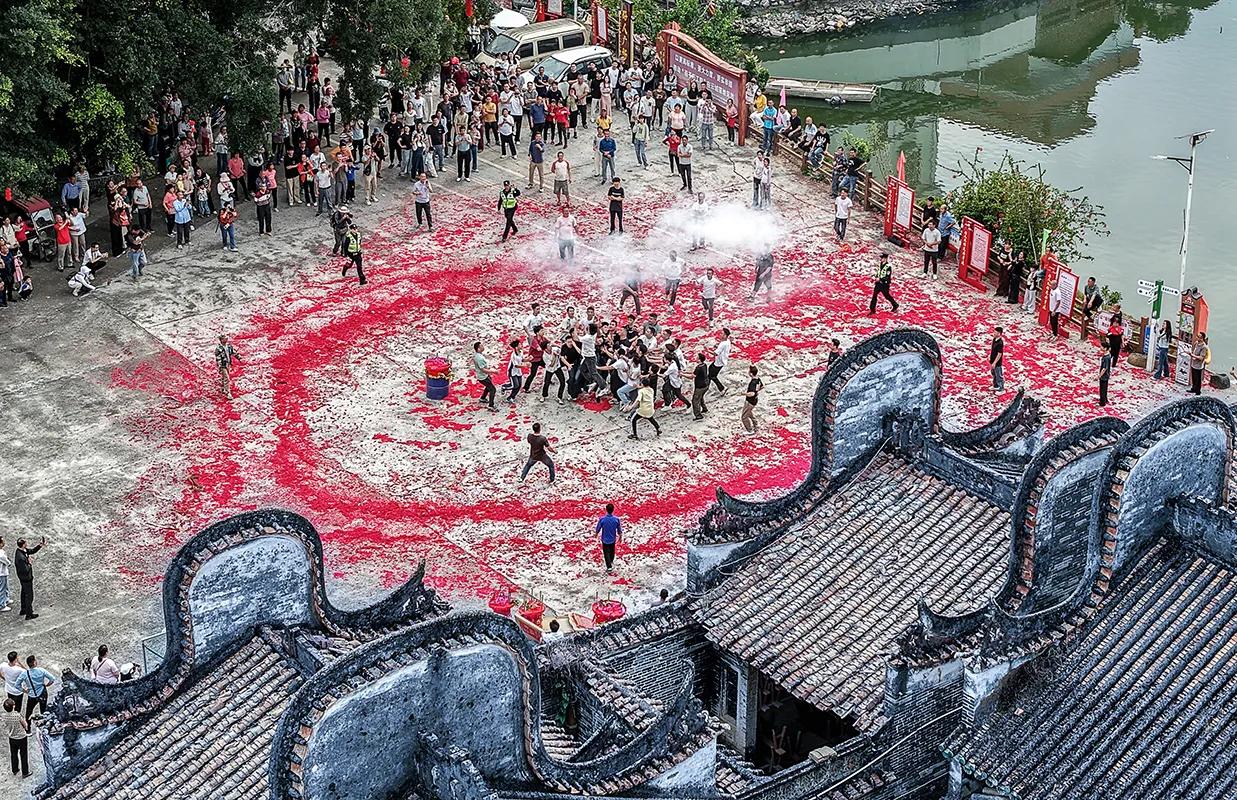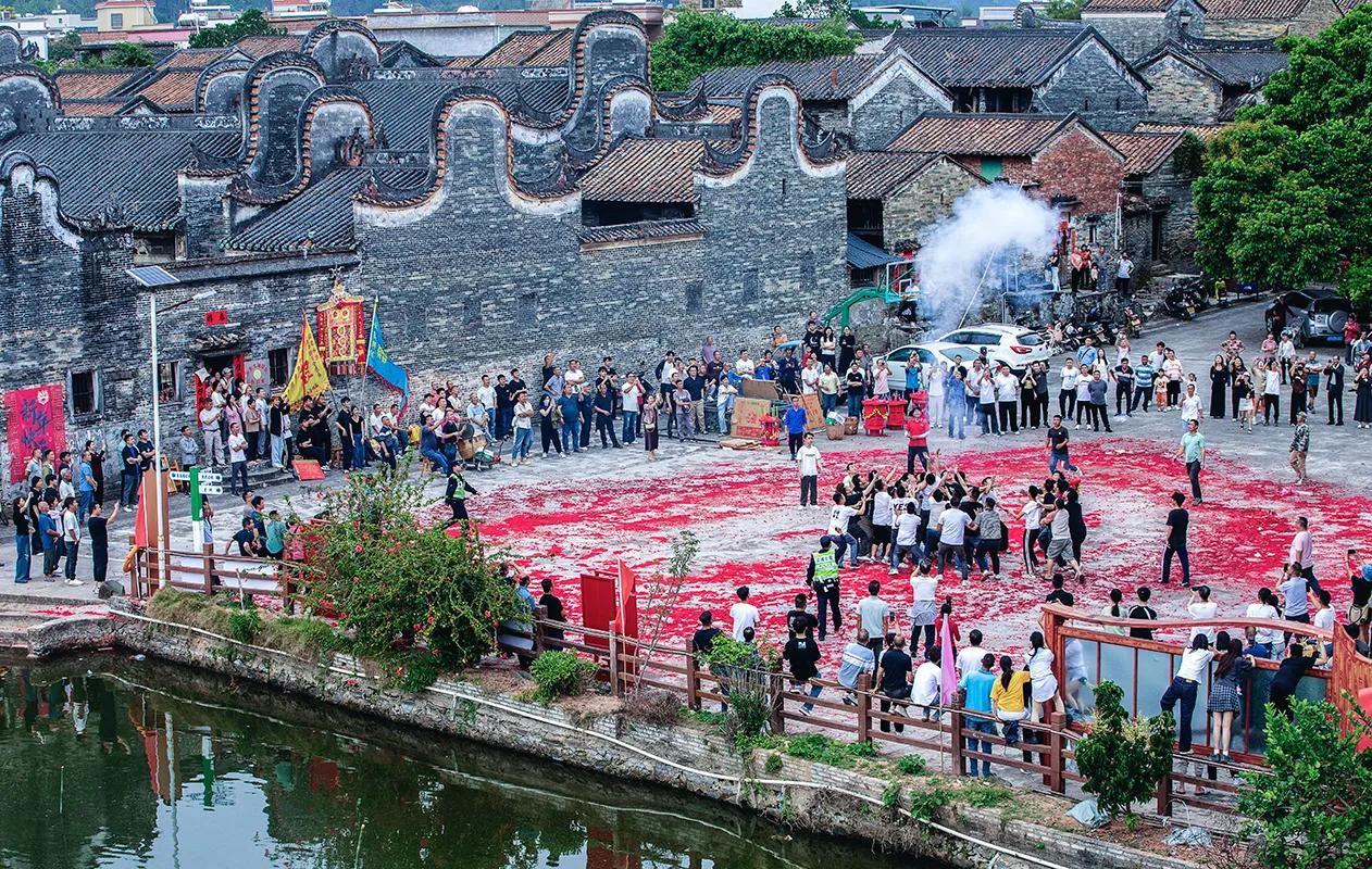 昨天是农历二月初二,龙抬头。广东省云浮市腰古镇水东村举行了花炮节——村中在过去一年里新婚生子的人家,都会在这个节日里燃点一个花炮,新婚的点“新郎炮”、生子的点“添丁炮”,这是一个庆祝人丁兴旺、家族繁荣的节日。