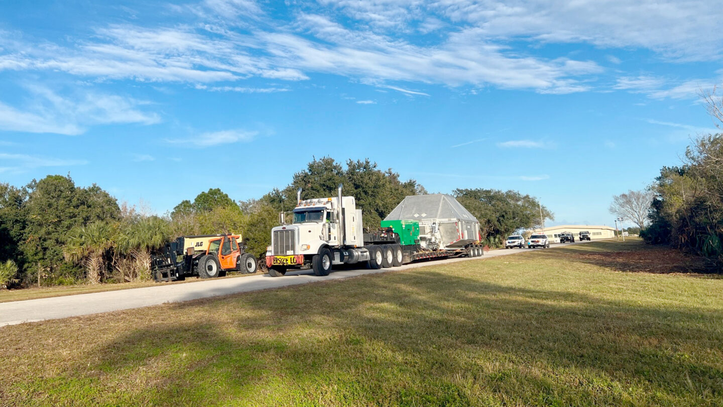 相比之下,搬一艘猎户座飞船就简单得多。2022年,阿耳忒弥斯1号任务结束后,猎户座飞船就是用一辆卡车横穿美国运回肯尼迪航天中心的(图三)。