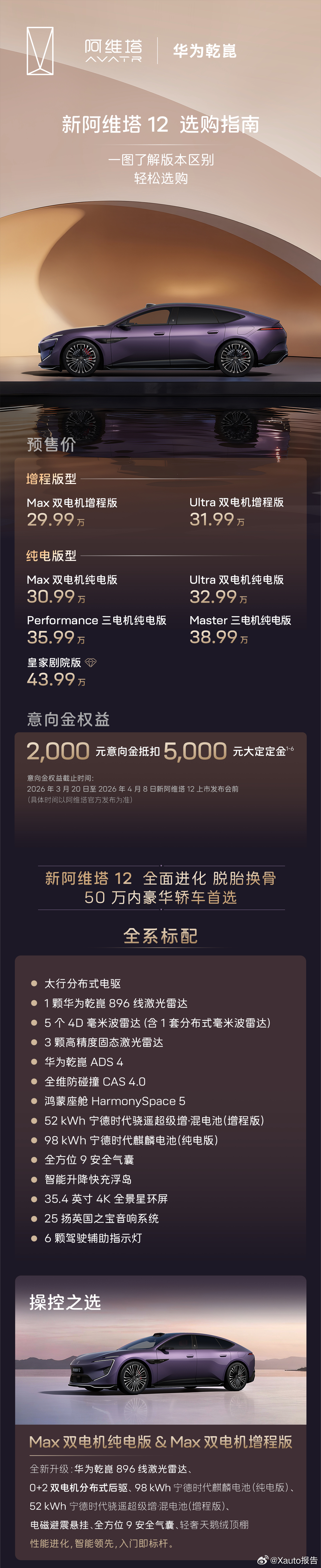 一图读懂阿维塔12选购指南。新阿维塔12搭载乾崑新四激光方案新阿维塔12预售