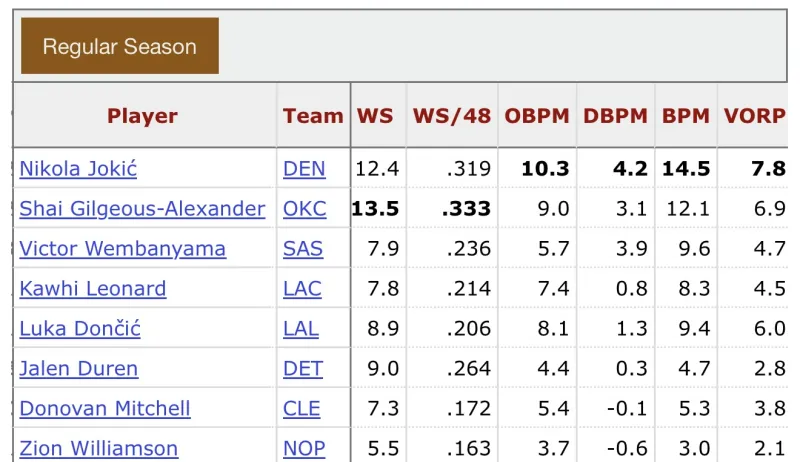 卢卡和mvp的距离 状态起太晚了,现在per,ws,bpm和vorp还是被亚历