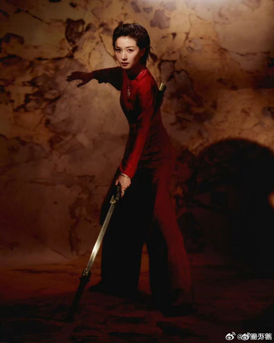 万茜英气万茜御剑造型红衣执剑踏风而来,眉眼间尽是凌厉锋芒,江湖侠气与绝代风情兼具