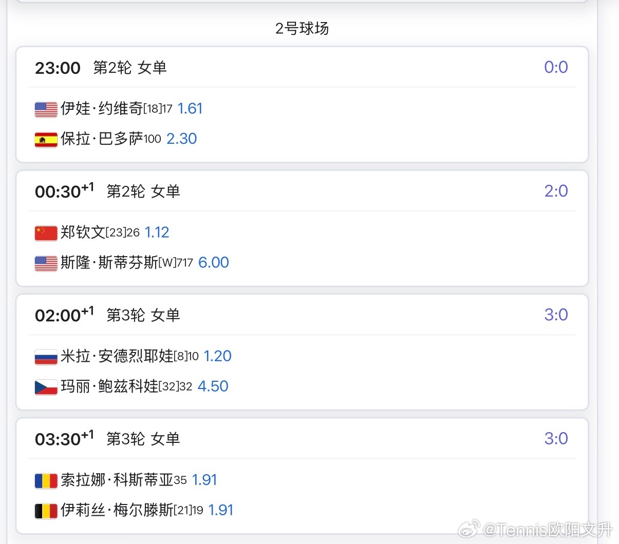 🔵WTA1000迈阿密焦点赛程预计00:30 🇨🇳郑钦文vs🇺🇸斯蒂芬斯