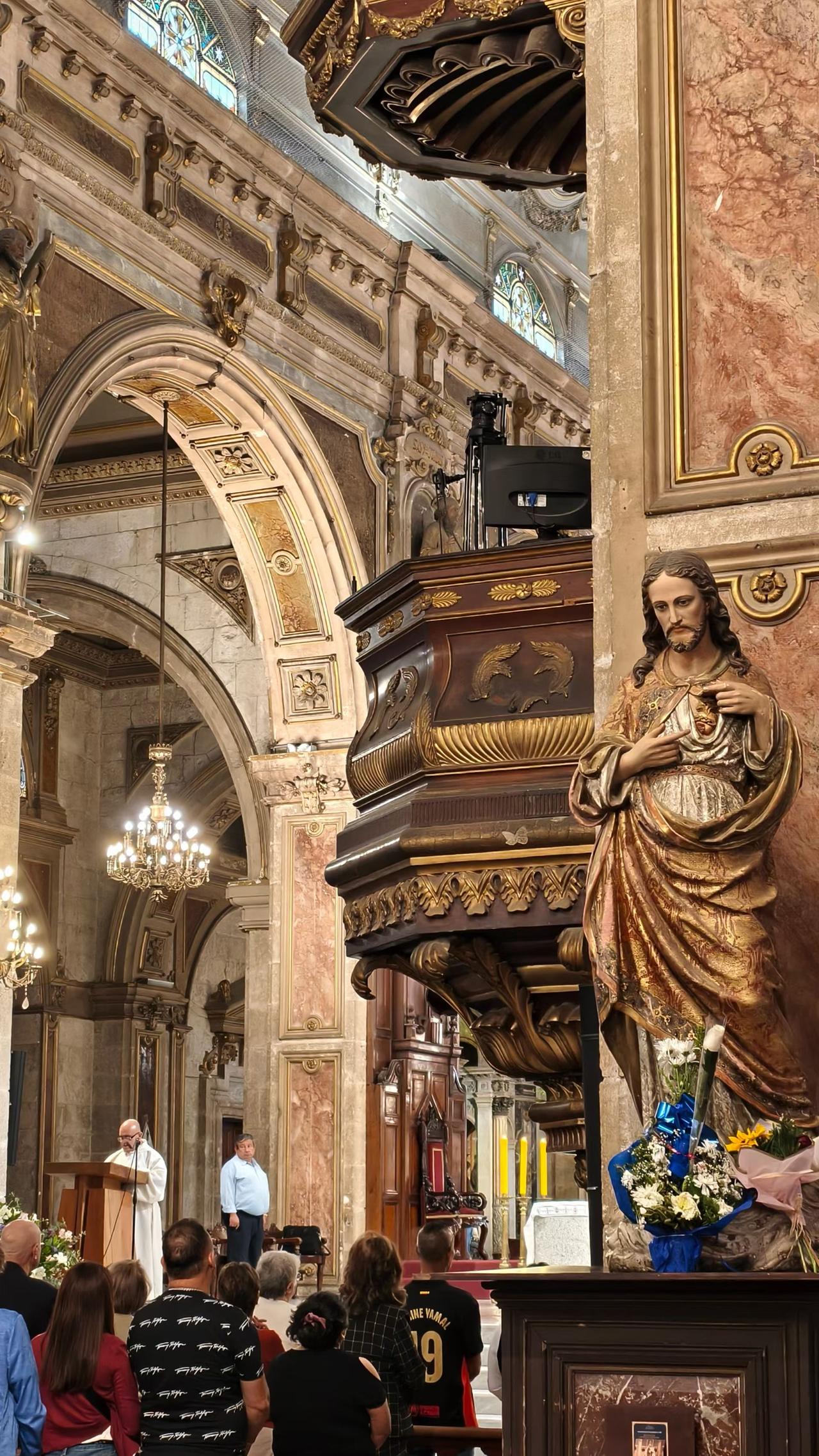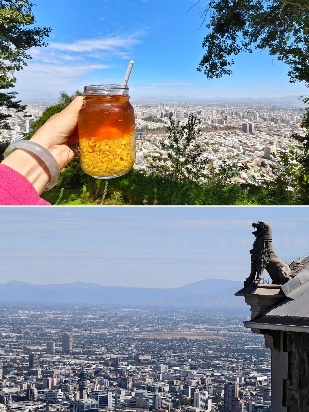 智利首都圣地亚哥citywalk。 一早去武器广场和宪法广场,因为“危险人物”还没起,人很少,平安逛完。曾经的西班牙殖民统治,给圣地亚哥打上了浓重的欧洲文化烙印,大教堂很美,还赶上了一场弥撒。 ​智利号称“南美最富国家”,坐着百年齿轮小火车登顶地标圣母山,东侧是繁华市区,包括南美第一高楼,北侧是贫民区,圣母面向的是南侧。 智利国菜Ceviche比想象中好吃,国酒pisco sour也不错,可惜现在不是车厘子的季节,但小麦桃子汁也很好喝,不过首都的海鲜并不鲜,期待南部的海鲜吧。