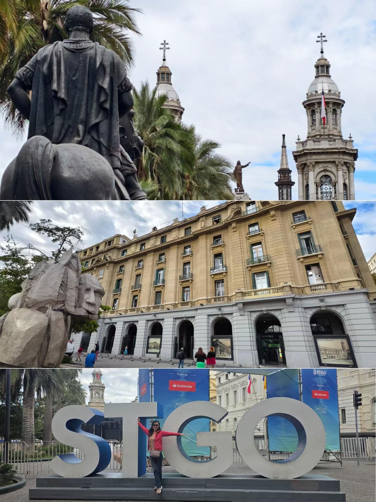 智利首都圣地亚哥citywalk。 一早去武器广场和宪法广场,因为“危险人物”还