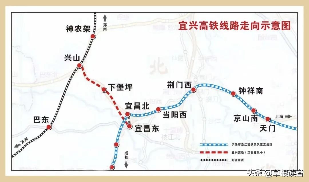 宜昌至兴山高铁年底通车,重庆至武汉高铁新通道即将成型 最新消息显示,宜兴高铁(宜昌至兴山)全线桥隧主体工程基本完工。最长隧道兴山隧道已于年初贯通,铺轨工程已进入兴山县境内,全线铺轨全面铺开,预计四月底完成全线铺轨,随后进入静态验收和联调联试阶段。 宜兴高铁全长109公里,设计时速350公里,是沿江高铁和郑渝高铁间的重要联络线,打通了重庆至武汉的快捷通道。在沿江高铁宜昌至涪陵段通车前,宜兴高铁解决了汉宜高铁断头路问题,也解决了重庆东出快捷通道问题。 目前重庆东出有两条通道。 第一条从重庆北站出发,经渝利铁路、宜万铁路到宜昌东站,再经汉宜铁路到汉口,全长845公里,运行时速在160至200公里之间。从重庆北到汉口,目前最快的车次是D958,全程需5小时54分钟。 第二条从重庆北站出发,经渝万城际到万州北站,经郑万高铁到襄阳东站,经汉十高铁、汉孝城际到汉口站,全长960公里,运行时速分别为250、310、200公里。从重庆北站到汉口,目前最快的车次是G3456,全程需4小时41分钟。 宜兴高铁通车后,从重庆北出发到汉口将形成一条新通道。该新通道由渝万城际、郑万高铁、宜兴高铁、汉宜高铁组成,全程913公里,运行时速分别为250、310、350公里,全程预计4小时左右。 2031年之前,沿江高铁宜昌至涪陵段尚未通车,宜兴高铁应会成为重庆东出的主通道。等到2027年下半年渝万高铁通车后,重庆东出将形成渝万高铁、郑渝高铁、宜兴高铁、汉宜高铁新通道,该通道全程运行时速都在300公里以上。 宜兴高铁通车后,对重庆而言最核心的意义在于打通重庆东出华中、长三角的350km/h高铁大通道,使重庆至武汉的时间压缩至4小时、重庆到宜昌缩至3小时内,形成渝汉4小时交通圈,并彻底激活郑渝+沿江高铁的路网价值。 重庆 重庆身边事 重庆爆料