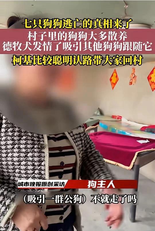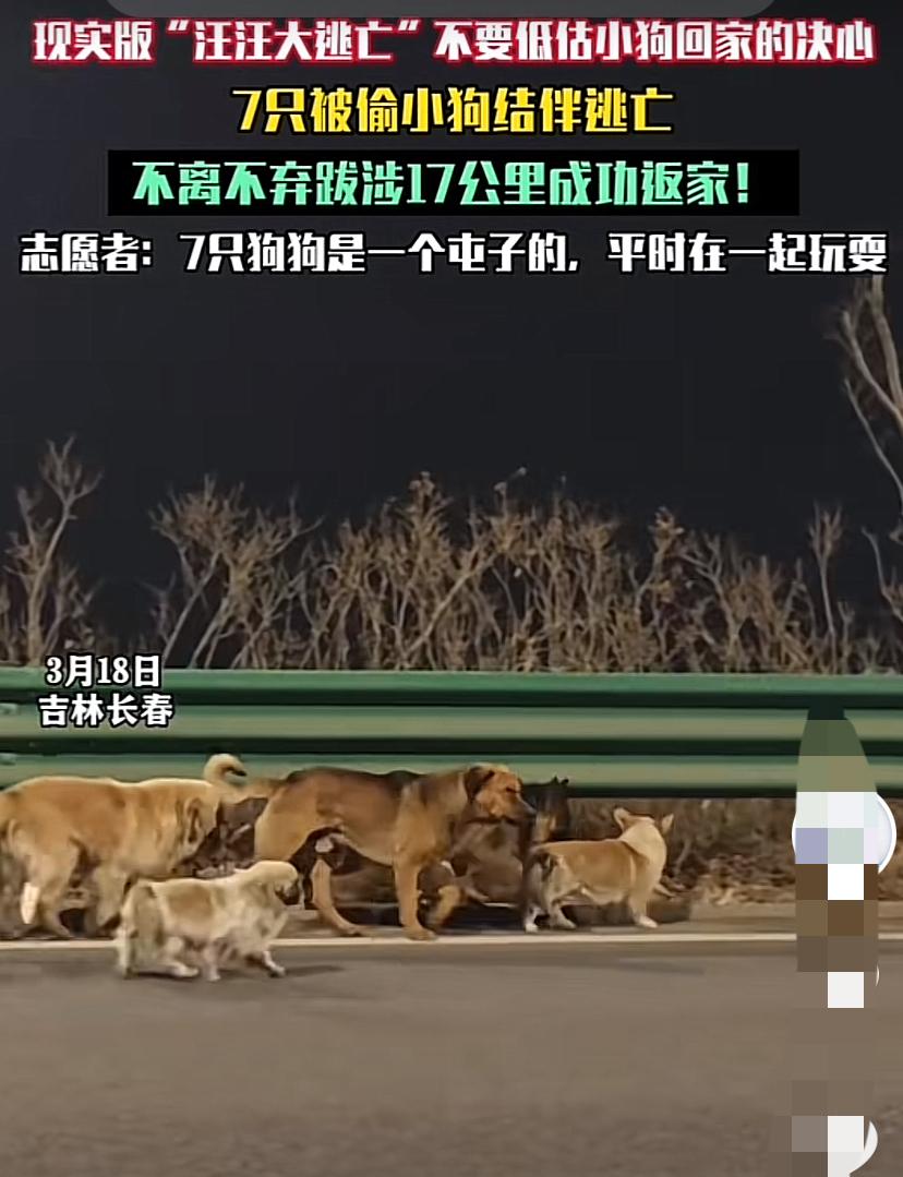 七只狗离家出走真相来了!狗主人透露实情,打了很多人的脸 吉林的7只狗在高速路上结伴同行被路人拍下并发了出去,视频被点爆,接下来众多媒体不乏一些大媒体纷纷争相报道,各种版本都出来了,很多都是在煽情说这七只狗是被狗贩子偷走了,然后几天狗发挥聪明才智挣脱枷锁跑掉了,然后一起寻找回家之路。 明智的人都不会相信这事,狗贩子能够同时在村子里捉住一起玩耍7只狗,根本不可能,狗只要不傻看到其中一只同伴被抓肯定会警惕的跑掉或者狂吠引起人类注意,所以同时捉住7只狗根本不可能。 7只狗被一些人传的神乎起来,狗主人却透露了实情,德牧母狗发情其他六只公狗为了争取交配权,一起跟着母狗,母狗被骚扰的到处躲藏,视频中也可以看到六只狗围着德牧转悠。 各大媒体看到结果脸发烫吗?宣扬积极向上的精神是好事,但也要实事求是。