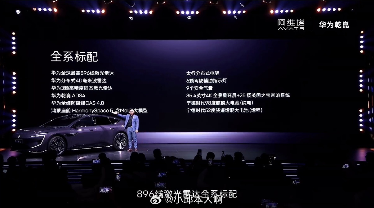新阿维塔12预售起步价29.99万,算是30万级别的电动轿车。这车最显眼的是装了
