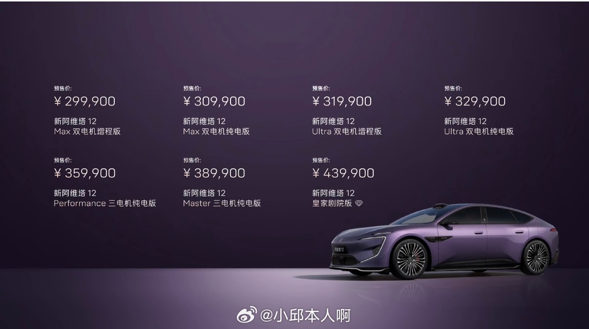 新阿维塔12预售起步价29.99万,算是30万级别的电动轿车。