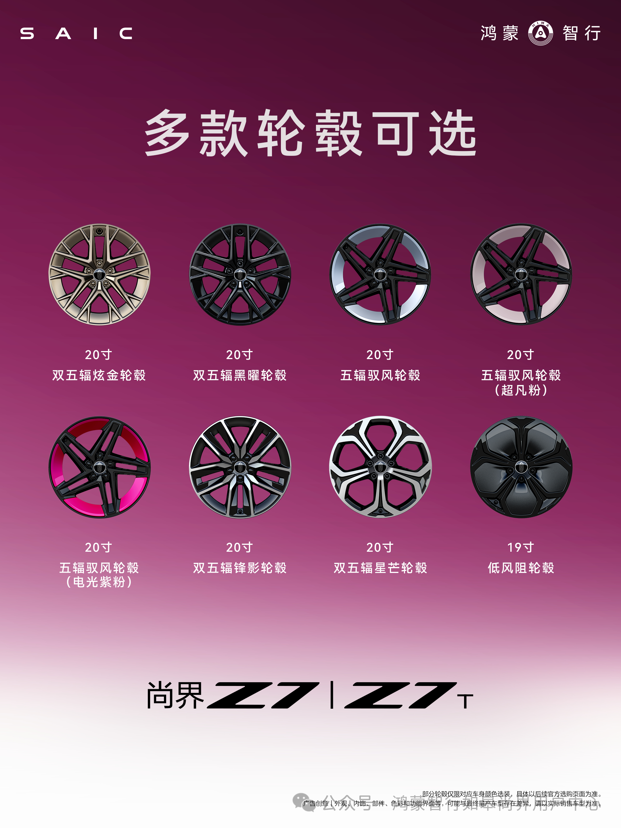【尚界Z7十款车色全部亮相,23日开起小订】尚界 Z7 及 Z7T 共推出 10 款车身颜色:电光紫粉、晚山新绿、琥珀金绿、陶瓷白、鎏金黑、流光银、幻影紫、超凡粉、清晖蓝、杜维埃蓝。其中电光紫粉为轿跑专属色,晚山新绿为猎装车(Z7T)专属色;全系可搭配多款轮毂,如 20 寸双五辐炫金轮毂、20 寸五辐驭风轮毂等。眼花缭乱下的车色,比SU7的车色还多1款,涂装车间的工人会怎么选呢?