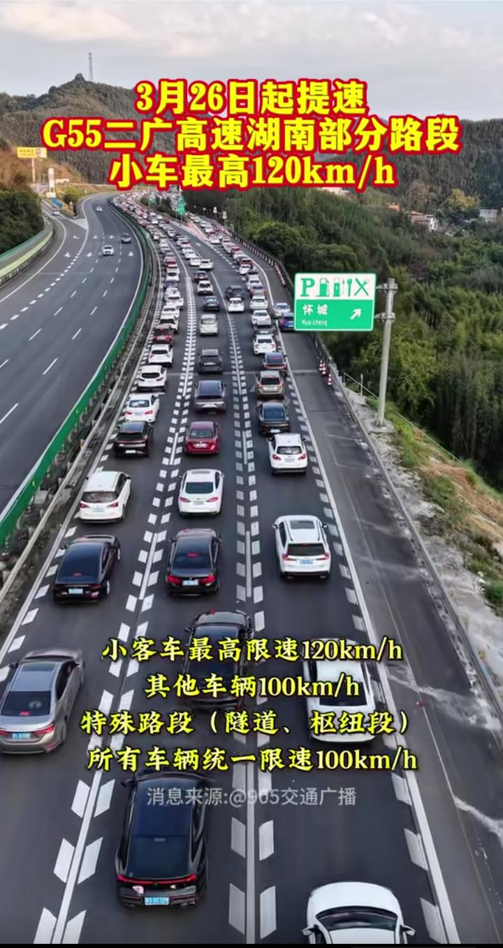 好消息,G55二广高速湖南娄底至邵阳段即将于3月26日进行限速优化调整,小客车限