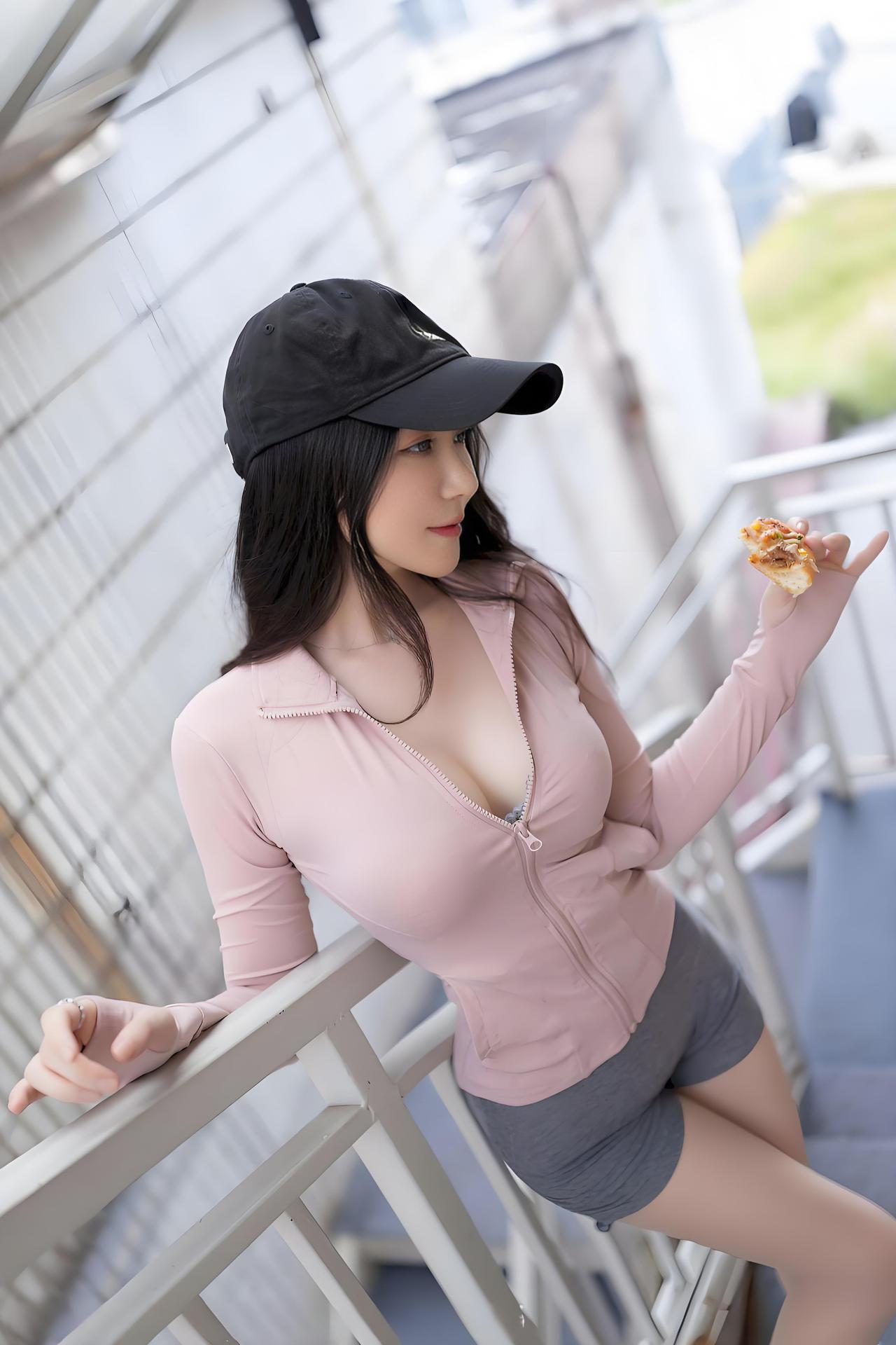 午后的老楼道飘着慵懒的风,粉灰穿搭的姑娘单膝跪在台阶上,黑帽檐下垂着的碎发,衬得眉眼愈发灵动。她指尖捏着的那块披萨,芝士拉丝在阳光下闪着暖融融的光,像把整个春天的甜都凝在了这方寸之间。 她抬手轻扶帽檐,长发顺着肩头滑落,和身后斑驳的白墙、远处的绿树撞出温柔的氛围感。没有刻意的摆拍,只有松弛的自在——楼道是城市的褶皱,而她是褶皱里藏着的小惊喜,一口披萨的香气,就能把平凡的午后,酿成让人念念不忘的治愈瞬间。 原来浪漫从不需要刻意寻找,它就藏在这样不经意的时刻里,像她眼里的笑意,像披萨上融化的芝士,暖得刚刚好。