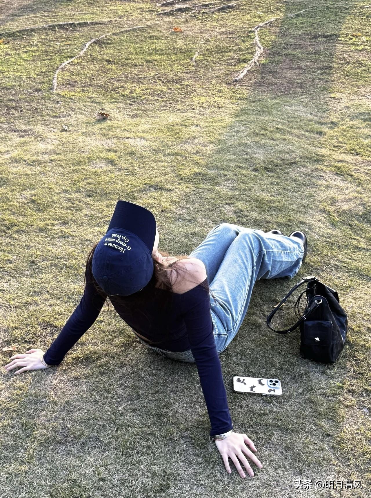 天气一好,人就想去草地上坐坐、走走。 前几天在公园试了个特别简单的动作——背对镜头坐在草地上,双手往后撑开,仰头看远方。本来只是想歇会儿,结果朋友随手一拍,出来的照片反而比刻意摆的都要好看。整个人是彻底放松的状态,画面也开阔,那种松弛感特别自然。 其实草地拍照真不需要什么复杂姿势,也不用紧张。找个舒服的地方坐下,或者就是简单地站着,让身体动一动——歪个头、手放下来、回头看一眼,放松下来,照片自然就好看了。春天到了,穿着牛仔裤,动作不需要复杂,拍照都很好看。 你平时在草地上拍照,最喜欢用什么动作?