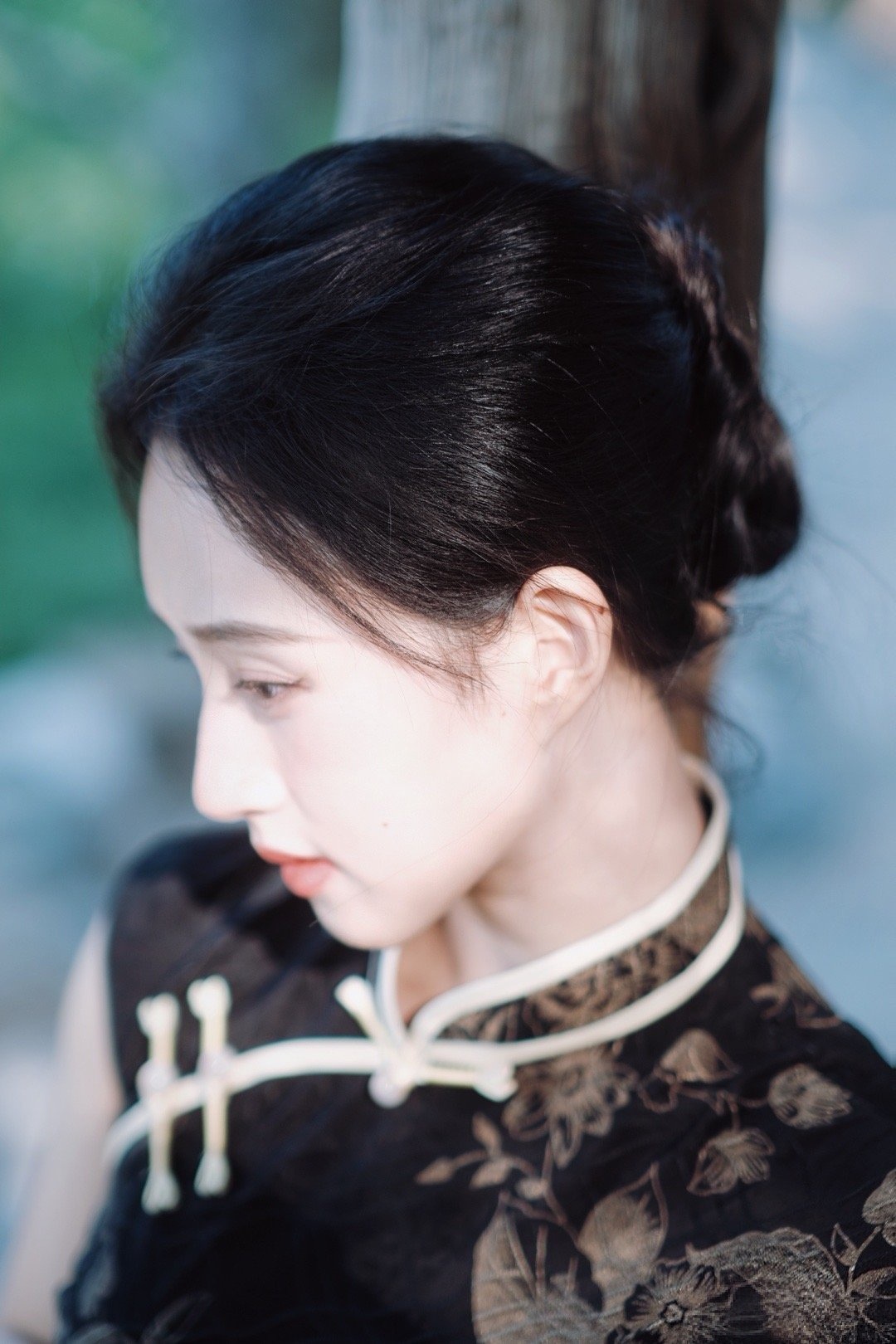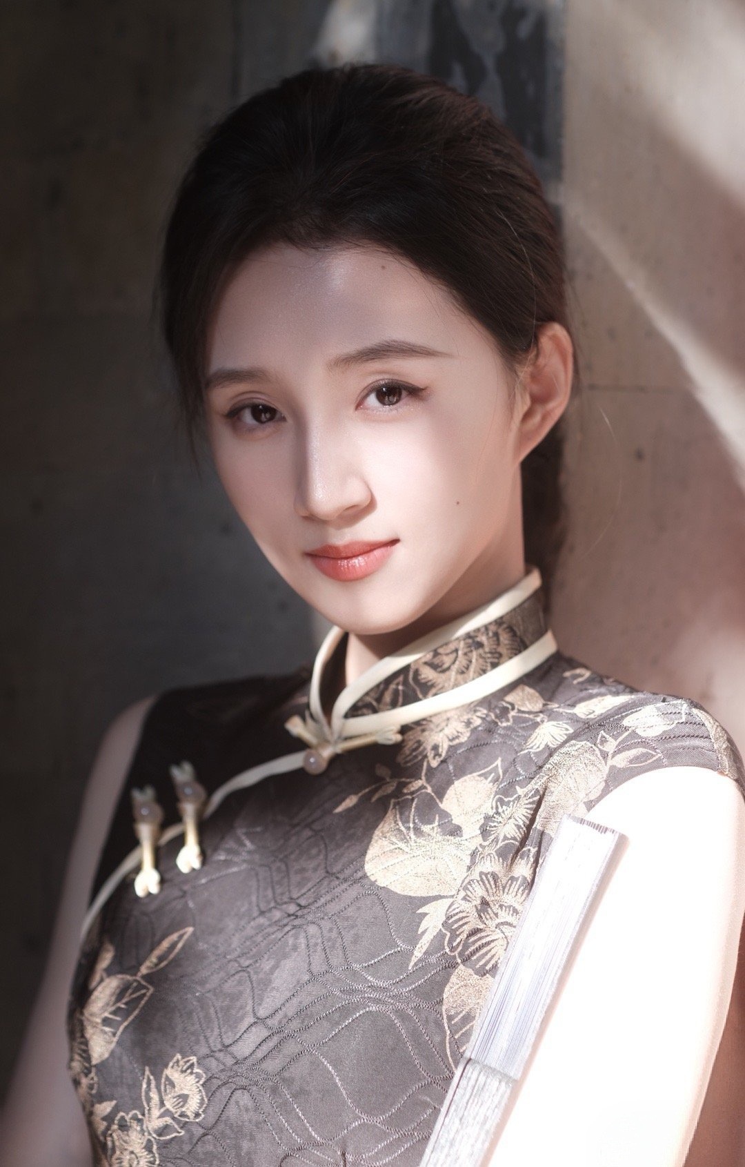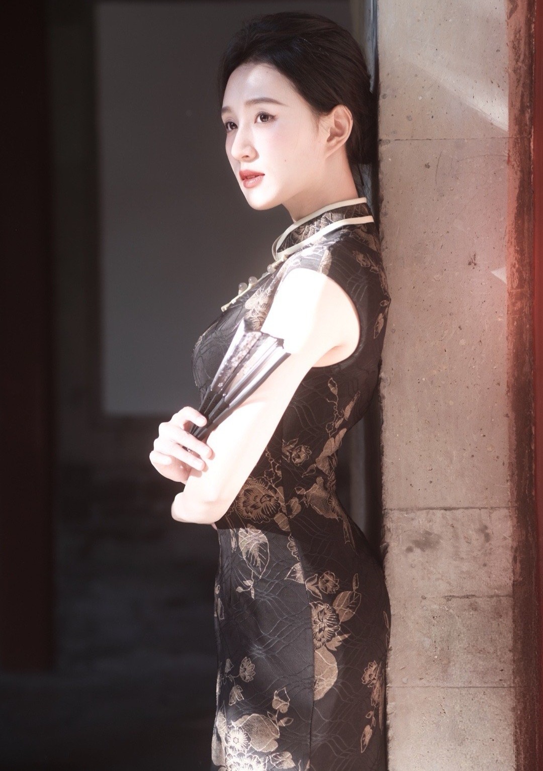 玉人轻抚锦衣,风姿绰约。
