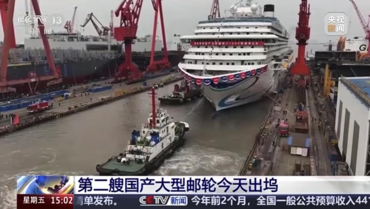 “爱达·花城号”顺利出坞 国产大型邮轮再迎里程碑 2026年3月20日,我国第二艘国产大型邮轮“爱达·花城号”在上海顺利完成出坞作业,全面转入码头调试阶段。该船出坞后将按计划于5月底开展试航,全力冲刺年底前交付。