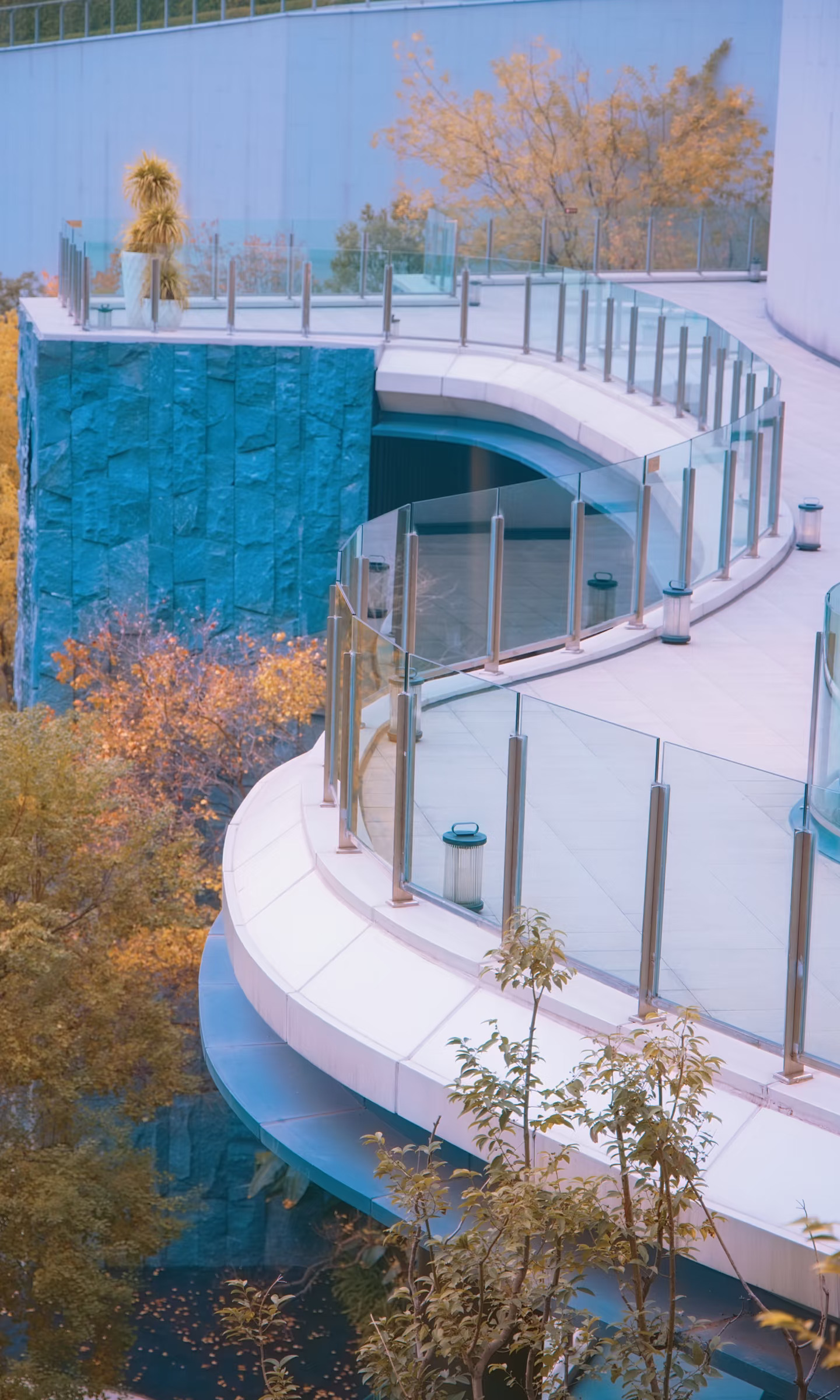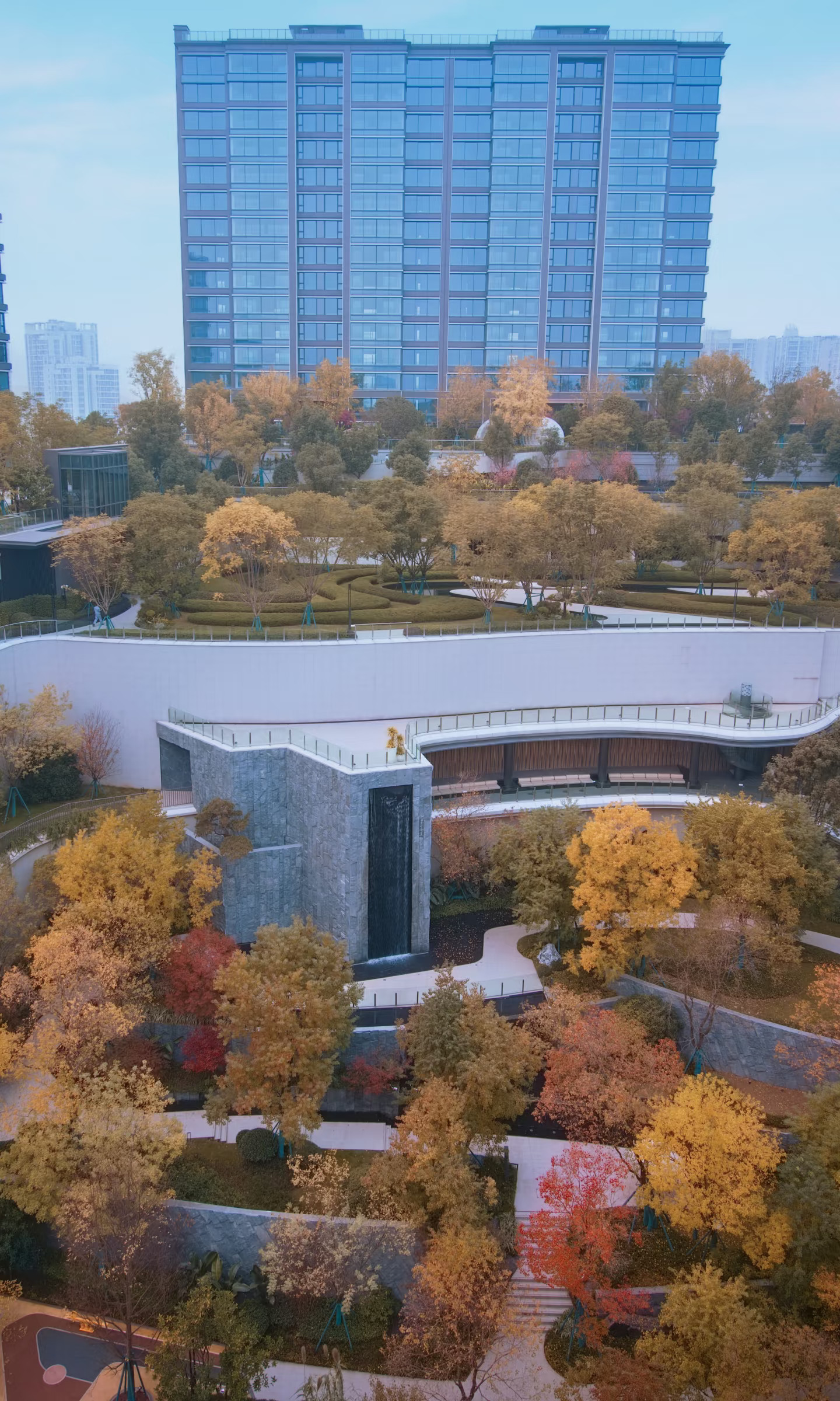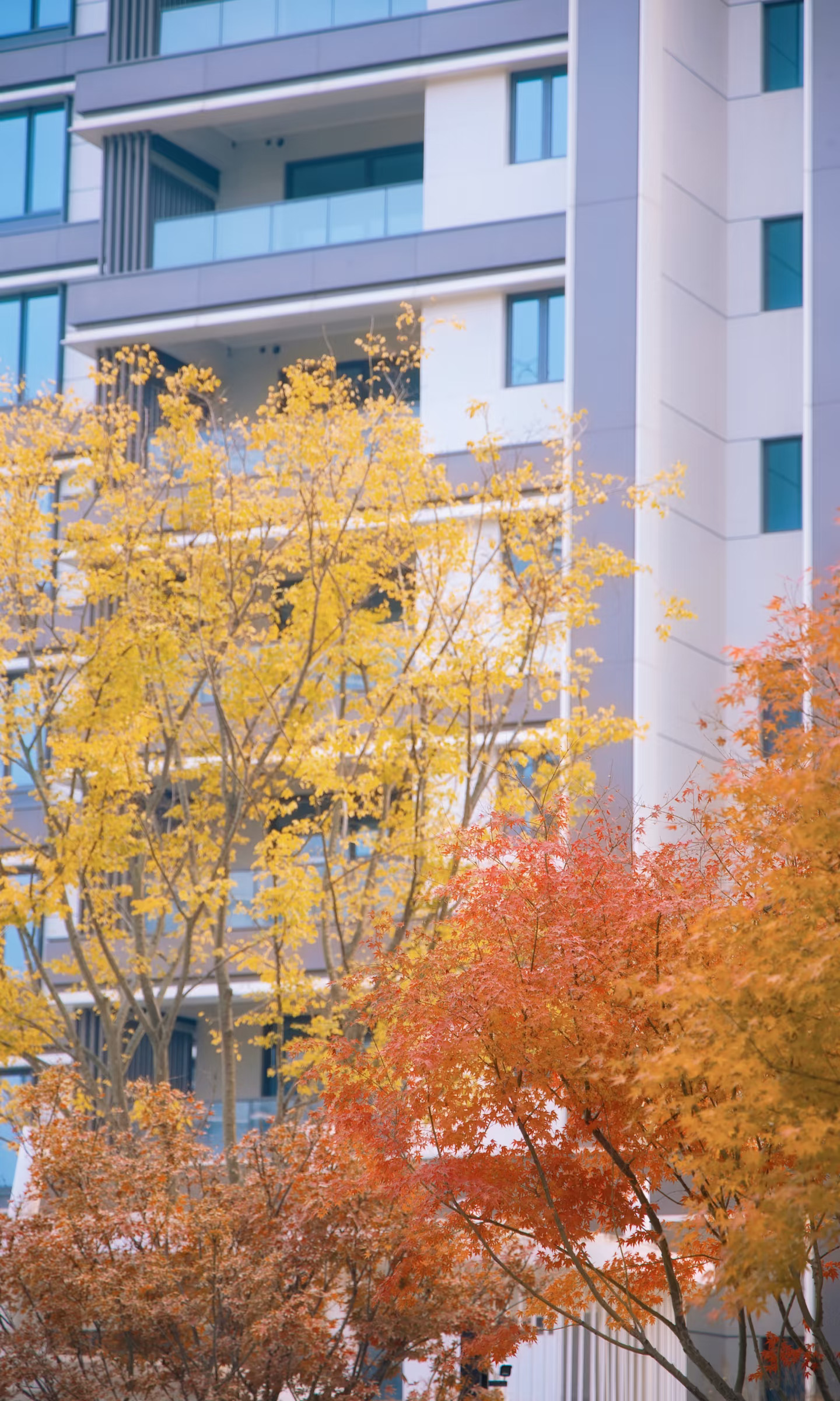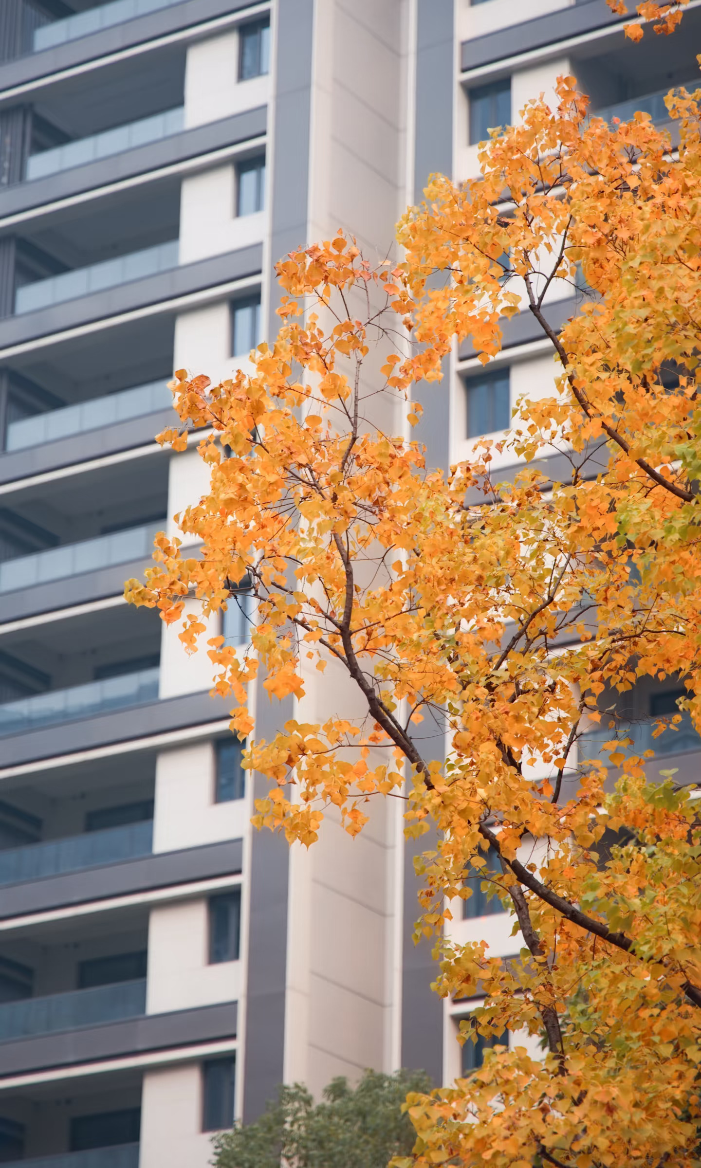 玻璃幕墙反射着秋日的暖阳