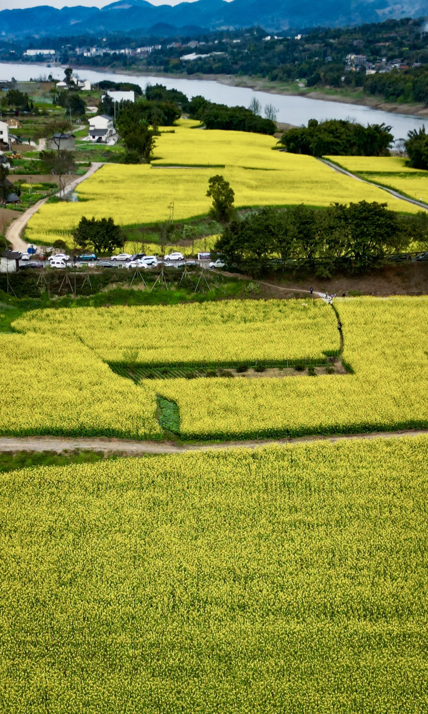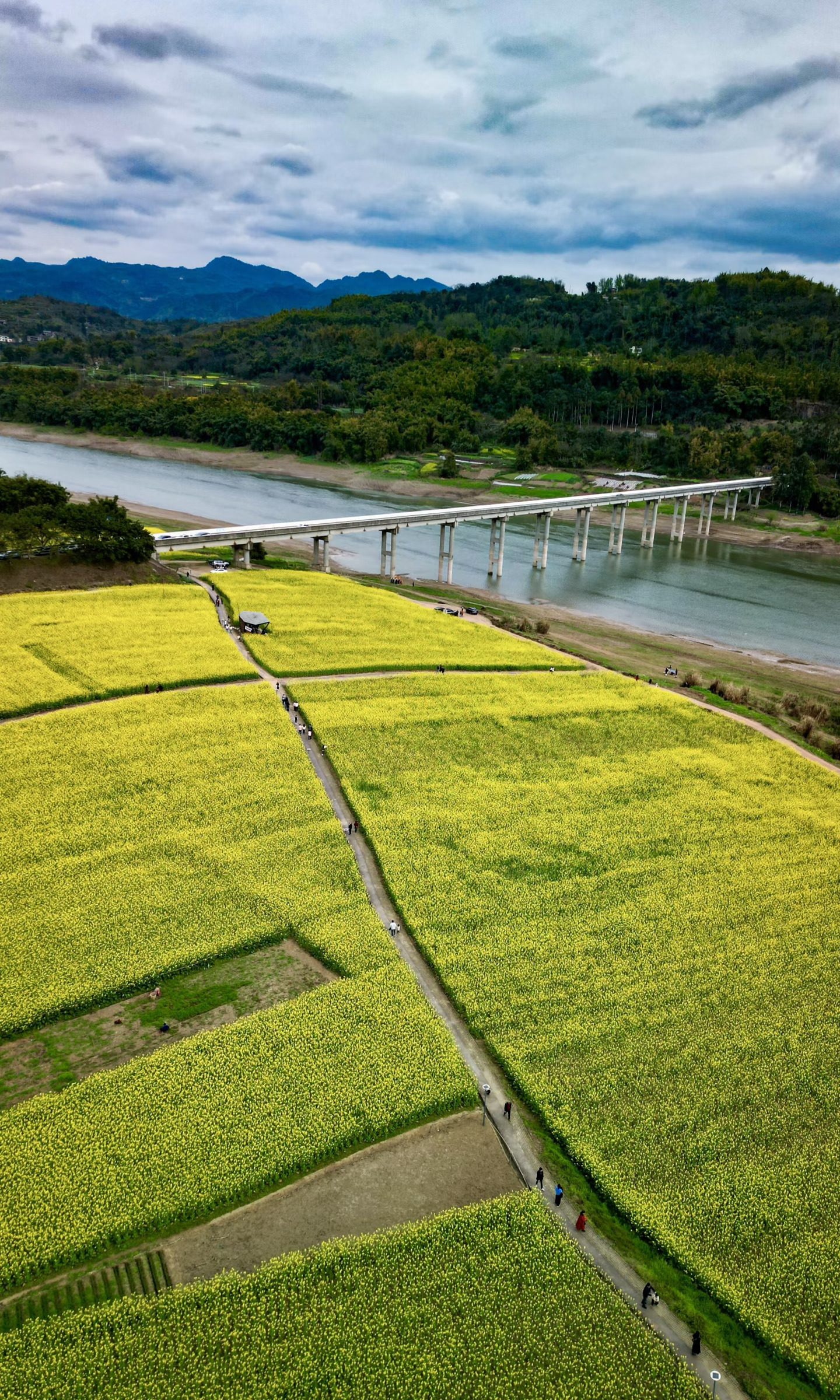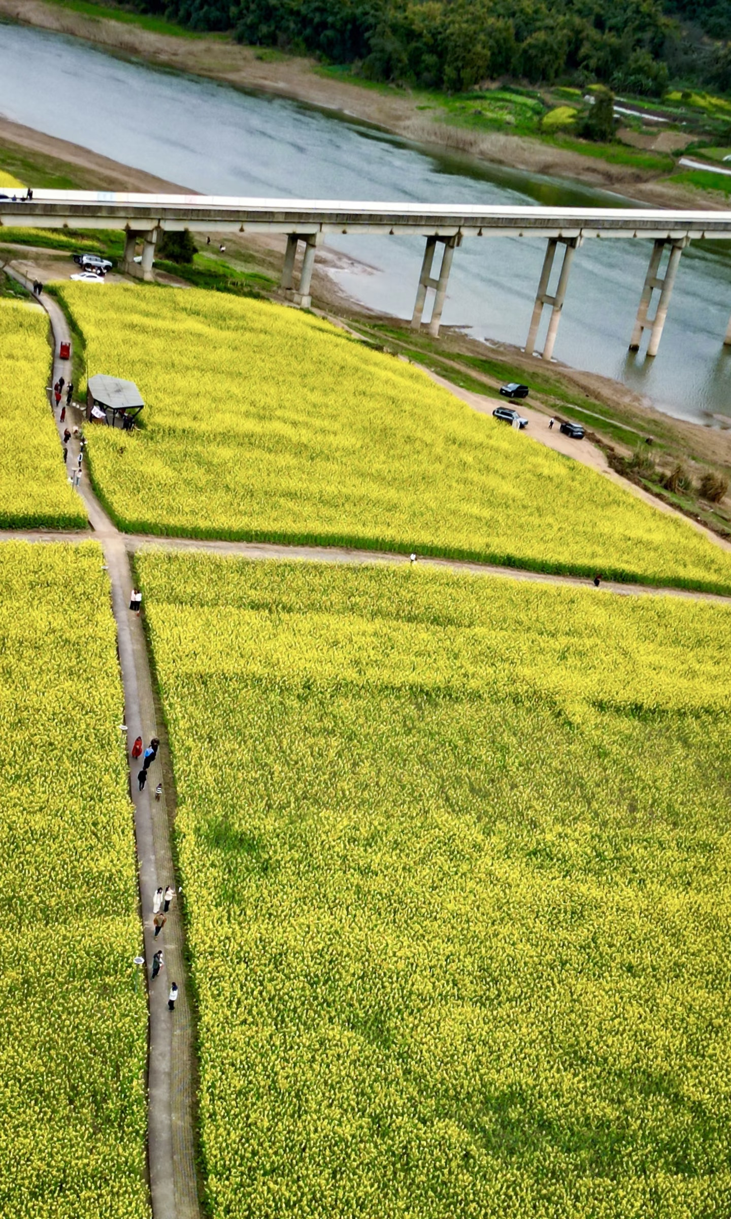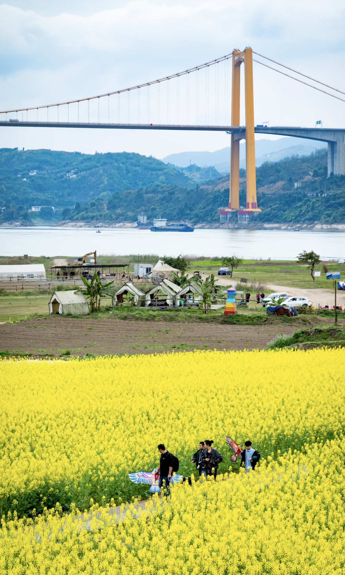 南平坝的春天很特别 不是简单的油菜花田 而是一整个江心岛屿的金色限定浪漫 南平坝是长江中的一个岛屿 中间靠一座大桥连接 无需门票,从主城自驾大约1小时就能到 这里不只有一望无际的油菜花 还有广阔的江边草地 很适合露营和放风筝体验感非常丰富 登上观景台或者放飞无人机 江心岛屿大片油菜花尽收眼底 南岛的风很大 很适合放风筝🪁 也太适合出来放空心情啦 ✅玩法与建议 🌼赏花:这片花田最大的特色就是与江景 大桥同框。一定要去观景台看看 俯瞰整片花海和江水,视野绝佳 ⛺️露营与野餐:除了油菜花田 岛上还有大片草地,是露营的好地方 可以自带帐篷天幕,也可以现场租赁 可以自备食物和饮用水 📷拍照:穿浅色系的衣,比如白色连衣裙 在金黄的花海里会非常出片 利用远处的桥梁做背景 能拍出空间压缩感 ⚠️温馨提示 配套设施:岛上公共卫生间 ⚠️注意安全:花田里蜜蜂不少 只要不去主动招惹就好 如果要深入草地 注意车辆,有些没公德心的人 会开进车进油菜地,会掀起很大的灰土 看见车来要躲远点 ⚠️爱护环境:岛上生态很好 请一定带走所有垃圾,无痕游玩 岛上的村民会卖一些自家种的蔬菜🥬 拆耳根和其他的菜都很新鲜 买的时候有一个村干部模样的人 不断在给村民打招呼,秤要秤够 不要乱喊价格 要热情好客等等 为村干部点赞👍 交通与停车 🚗自驾:最推荐的方式 直接导航“南平坝”即可 车可以直接开上岛 🅿️停车:如果只是在油菜花田附近逛 可以停在路边,免费 如果要开到江边草地(露营区) 会收取30元/车的清洁费 除非露营建议就停路边 🚌公共交通:比较周折,不作首要推荐 需坐地铁到“刘家坪站” 换乘公交D007到“麻柳嘴车站” 再换乘927路到 “南坪坝大桥桥头站”步行上岛