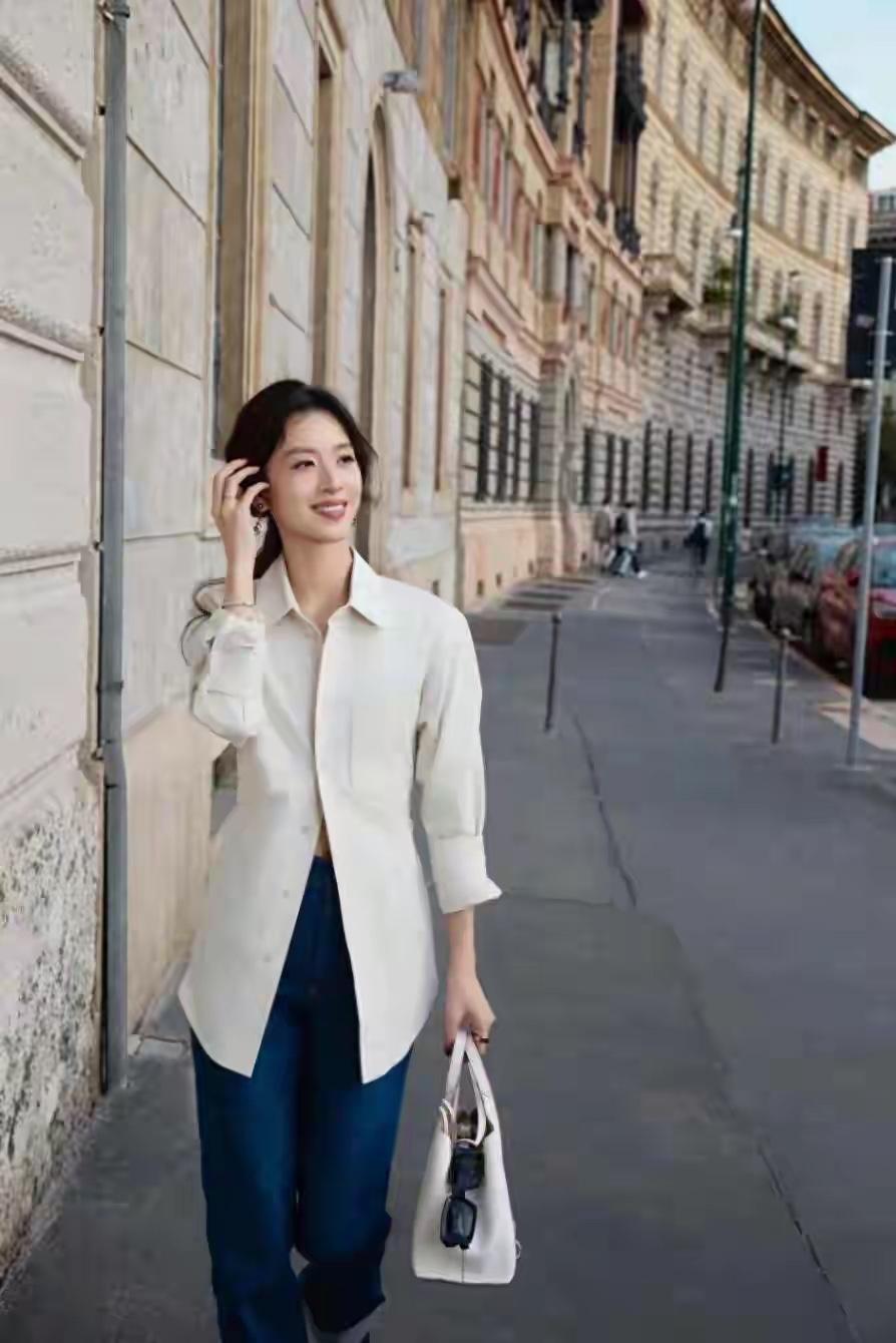 32岁章泽天被称为“百变女神”一点不为过,不管是衬衫还是裙子都能轻松驾驭。除了不输女明星的美貌外,她的身材还十分苗条,走在大街上回头率极高 上半身所穿衬衫是米白色面料,而且是纯色设计,衬得人贵气又优雅。衣服版型挺有看头,整体偏宽松但又做了收腰处理,不会垮塌显臃肿。小翻领出现在衬衣上不足为奇,女性在穿的时候,可能会解开最上面的两颗扣子,露出一小片肌肤,这刚好中和了衬衫的正式感