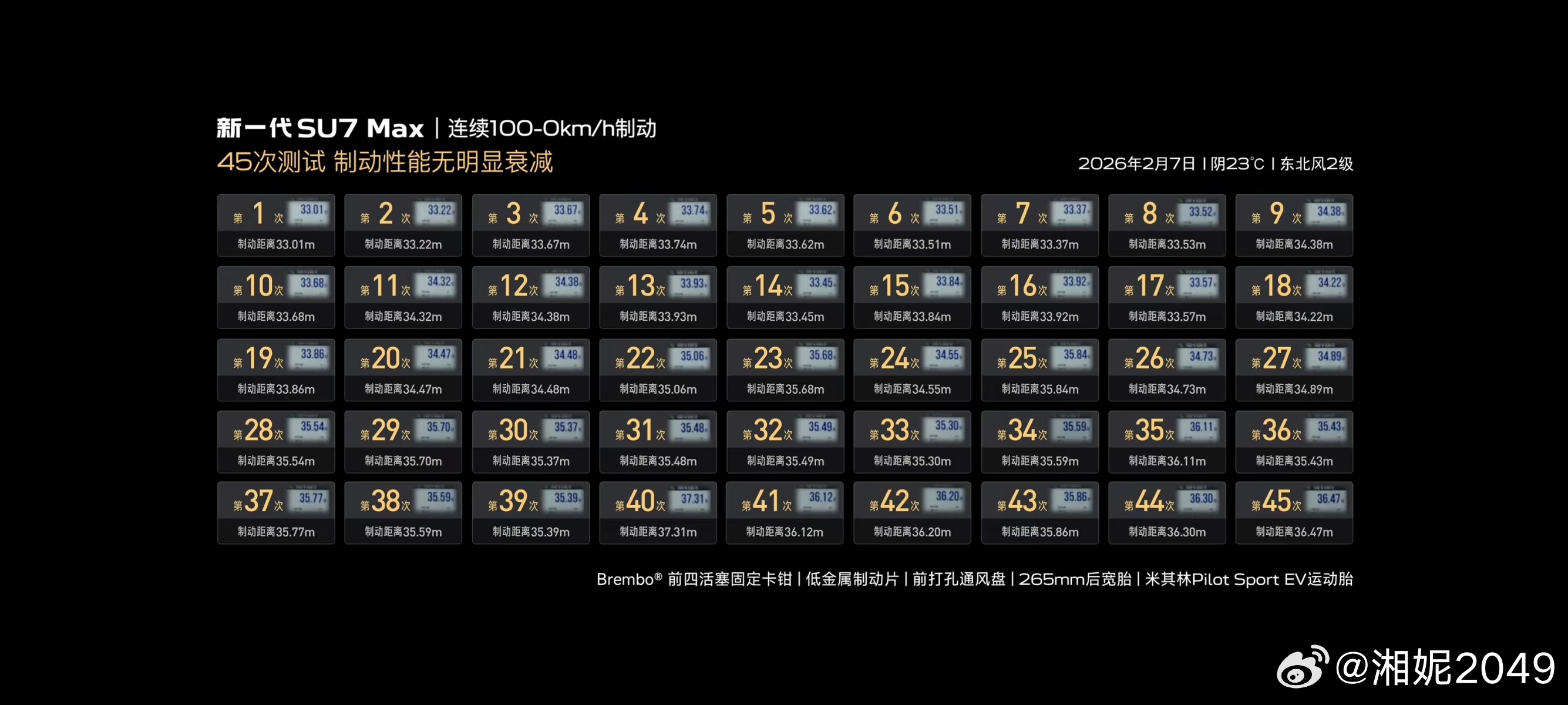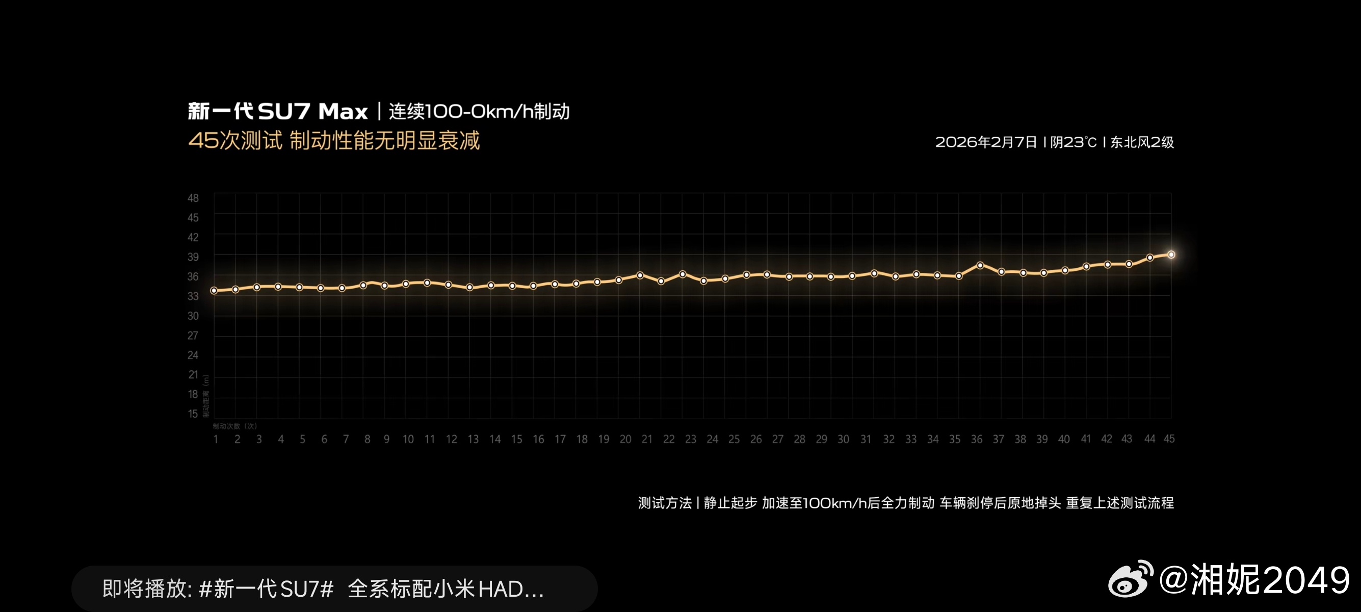 说是40次,实际做了45次,大家都带着放大镜看,这制动性能大家觉得咋样新一代SU7