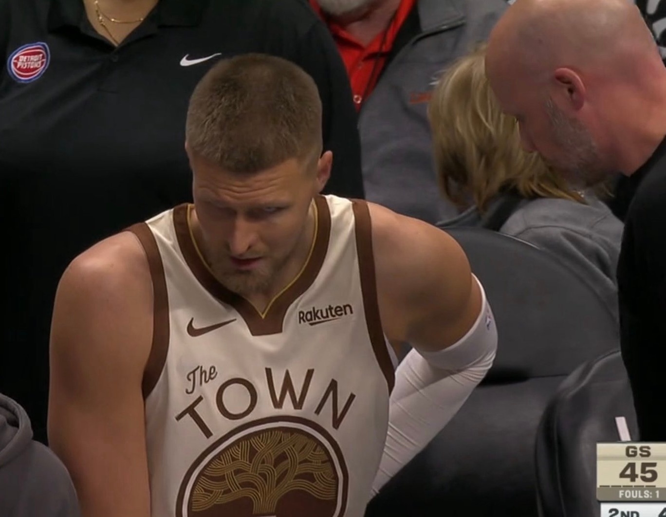 波尔津吉斯今天又受伤了 我也没刷到什么具体新闻 他也没有回到替补席勇士vs活塞 波尔津吉斯再次伤退
