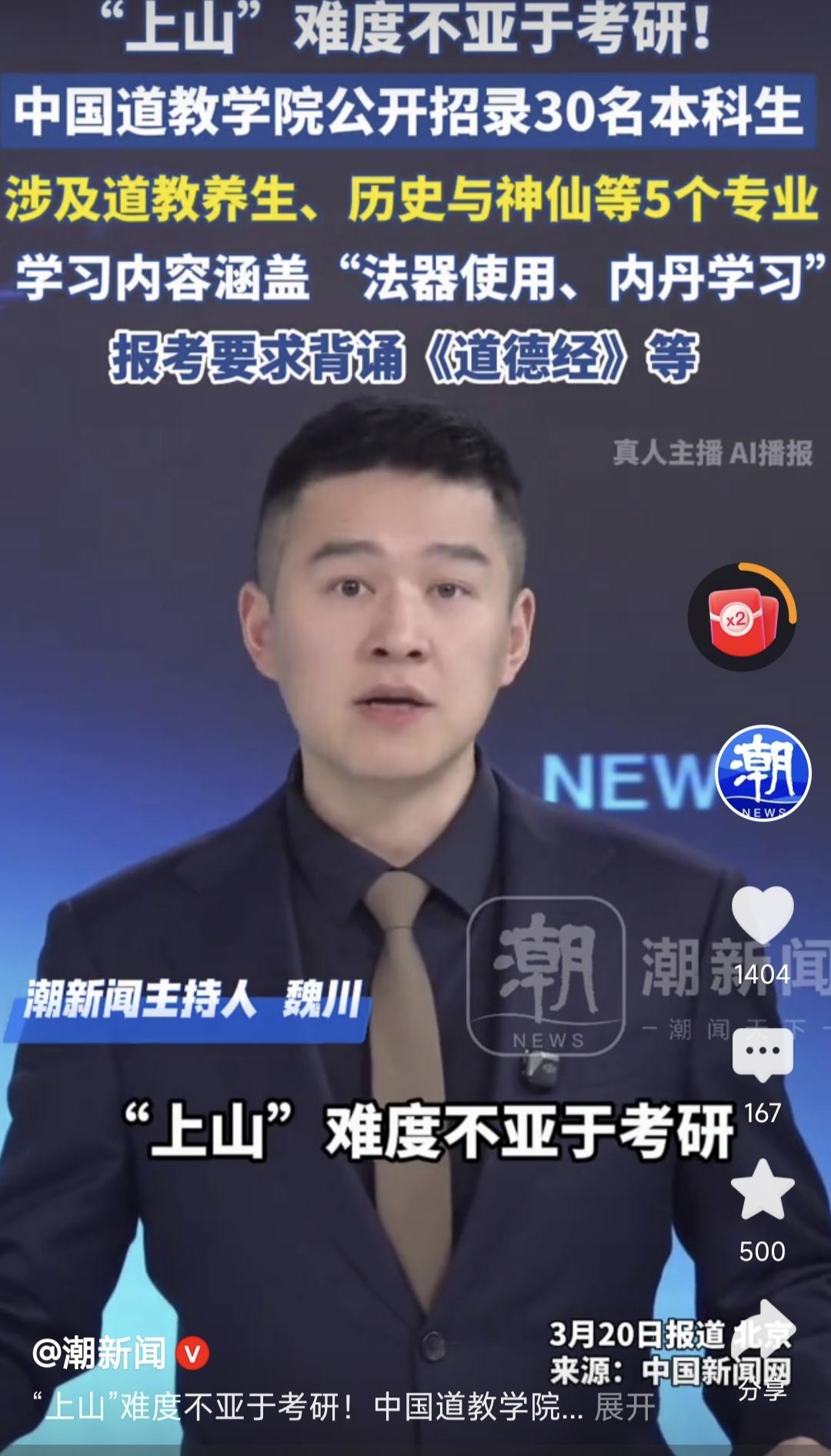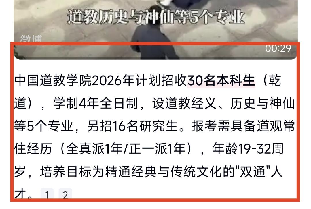 清华北大?不,这恐怕才是中国最难考竞争难度最大的大学吧,而且真的有神仙专业哟!中国道教学院招生,一共招30个本科生,16名研究生,公告一出,全网都不淡定了,好的网友好想去考这所学院,最想报考历史与神仙专业和炼丹专业。我赶紧去查了一下这所学院的情况,它位于北京市西城区白云观,1990年成立距离,距离现在也有30多年了。而且在里面读书学杂素食都是免费的,大四开始进入各大道观实习,相信就业完全不是问题。就问你们想不想读这所学校。我当年考大学的时候怎么没有听说有这所学校呢,要不我也去拼一拼。教育