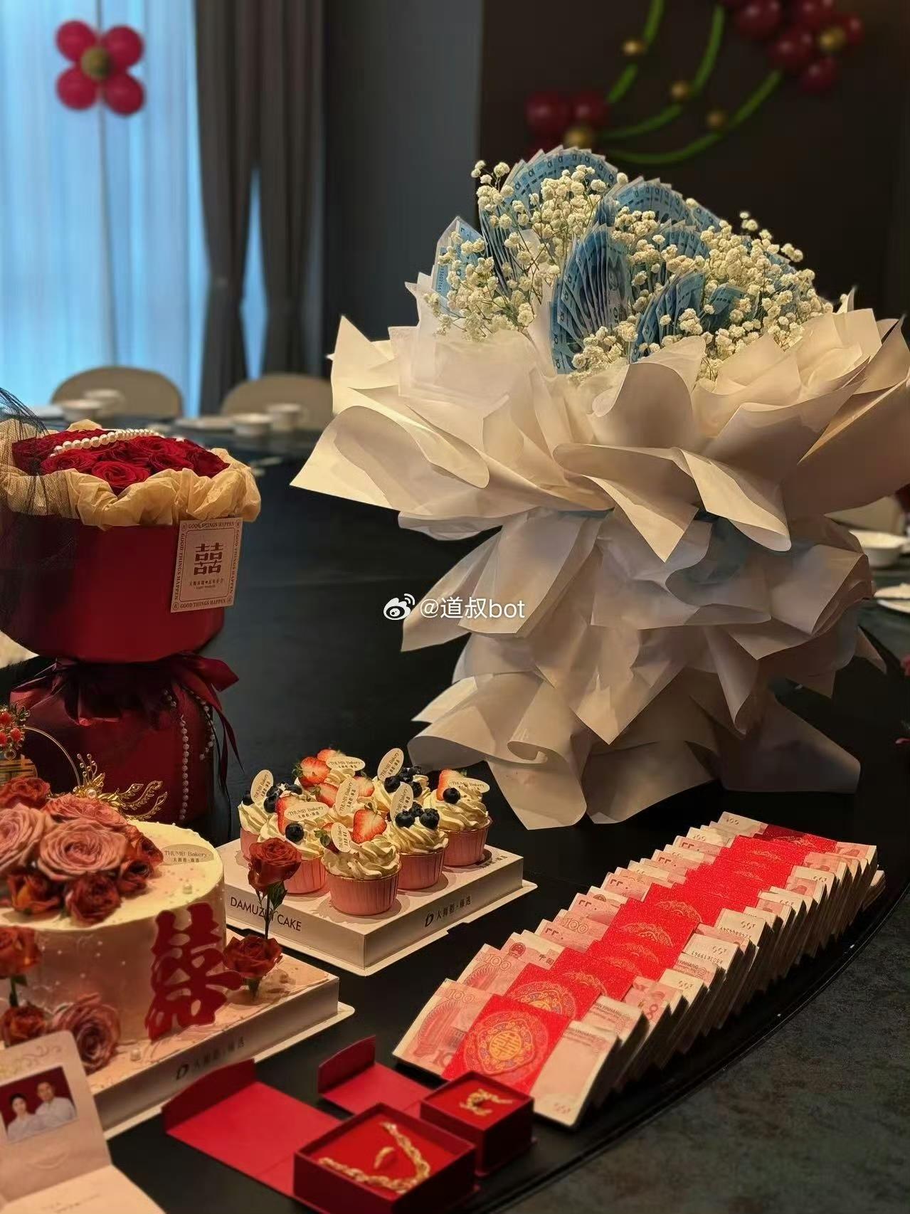 这位女子骄傲的宣布,嫁人就嫁老登,勇敢的做自己。她揭开了婚恋市场的真相,女人之所以不结婚,因为没有找到能让她幸福的人,而幸福的指标 99%是用钱衡量的。在他们的这场婚礼里。看到了精心布置的婚礼现场,女子掩藏不住的幸福笑容,因为桌上摆着人民币。她的老公虽然头发花,白年纪可以做她爸,但是有钞能力,可以满足她一切的物质的幻想。不要说她现实,因为现实会被理想击得粉碎。