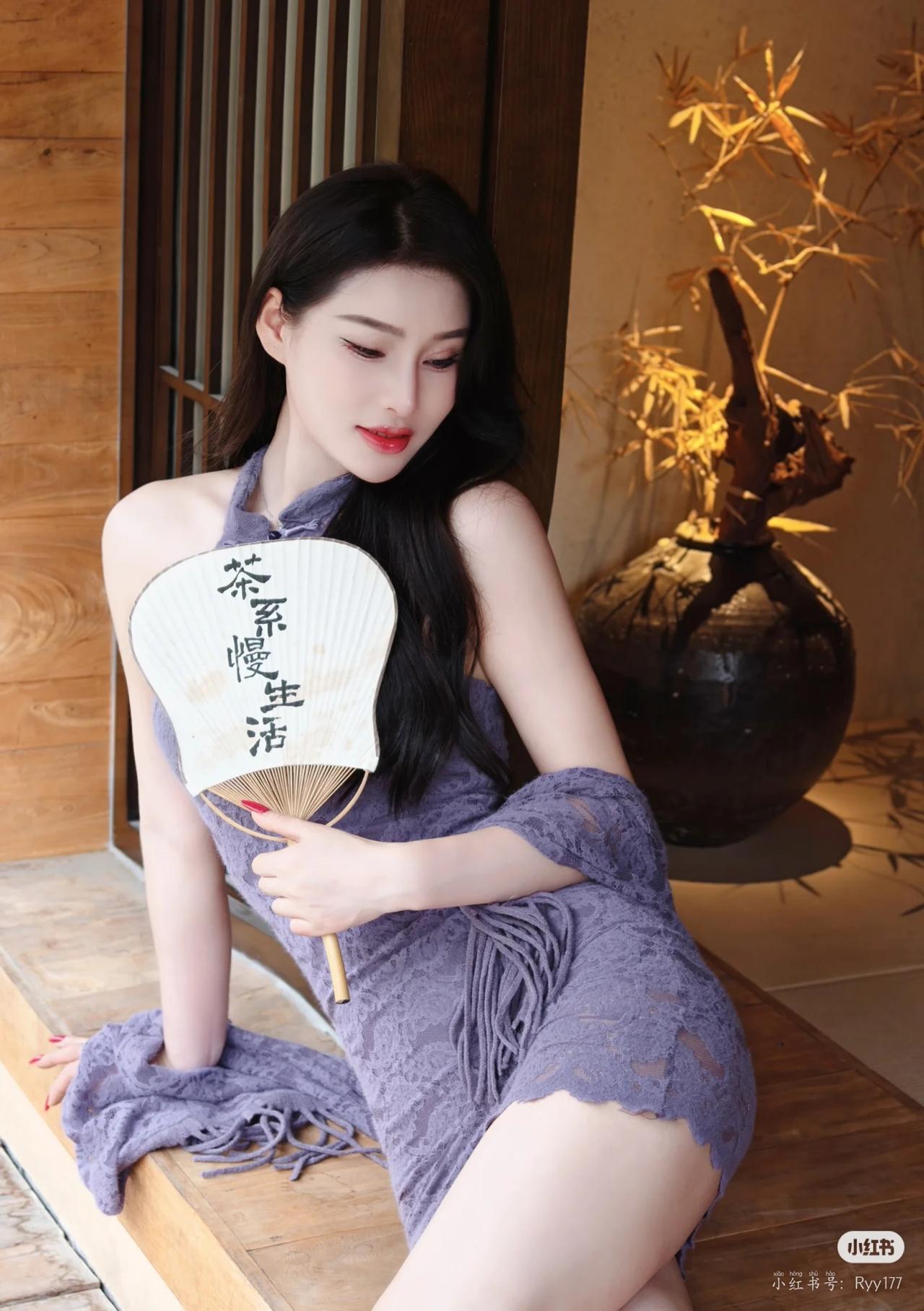 当复古旗袍撞上现代黑丝,是旧时光与新潮流的私密对话。她半倚在百叶窗边,黑色旗袍