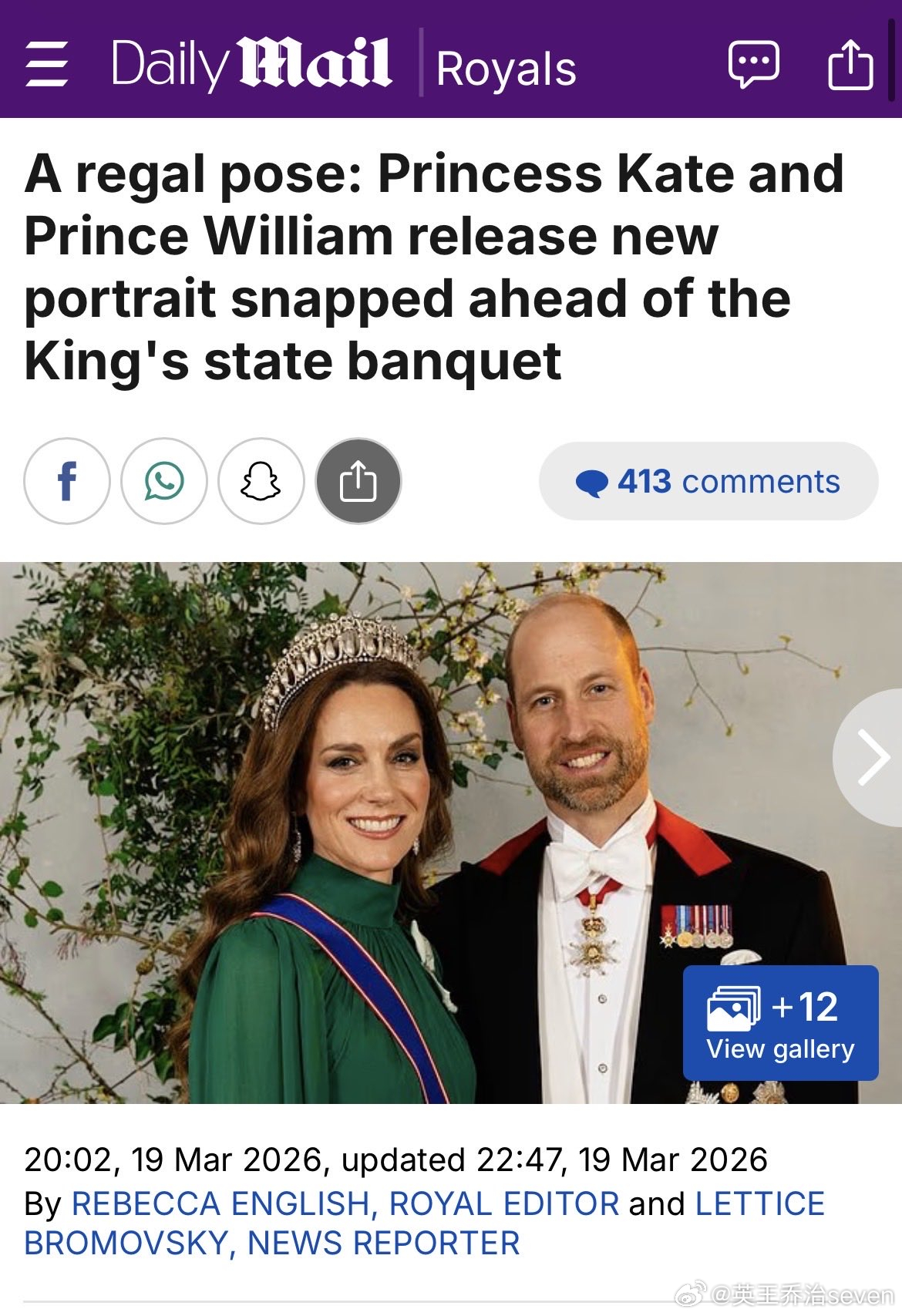 【揭皮wc】“尊贵”的标题和照片之间的差距令人尴尬。凯特的头发看起来是合成的,威廉看起来邋遢,12世纪的造型完全失败。别再把我们当成傻子卖垃圾了。