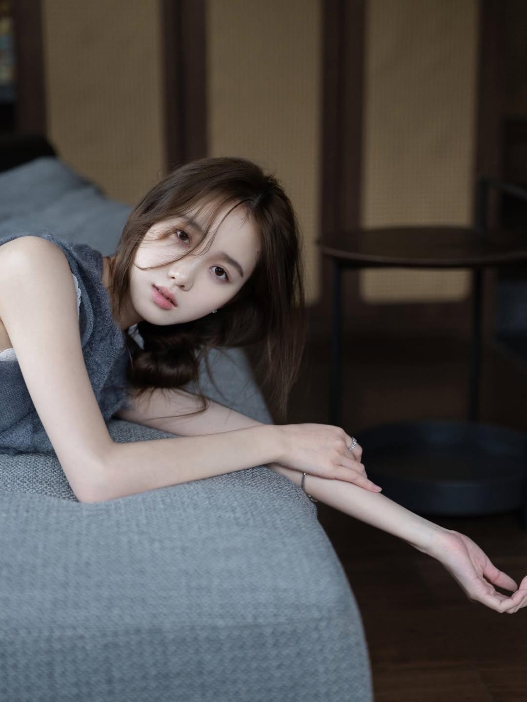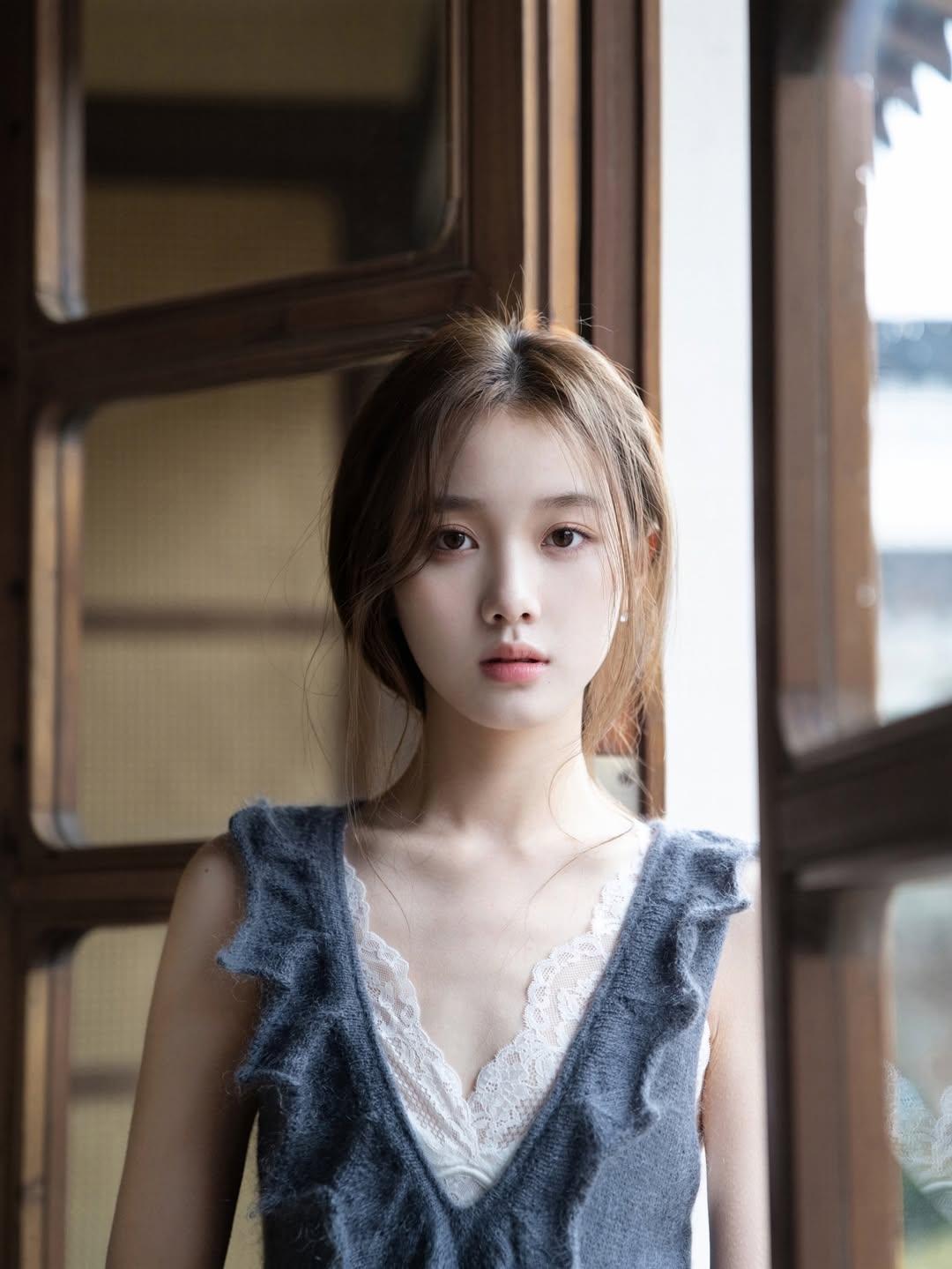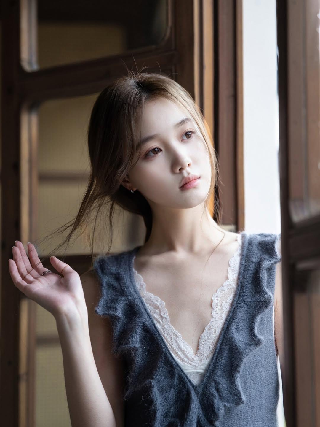 复古风穿搭,灰色连衣裙,优雅气质,自然光下更显温柔。