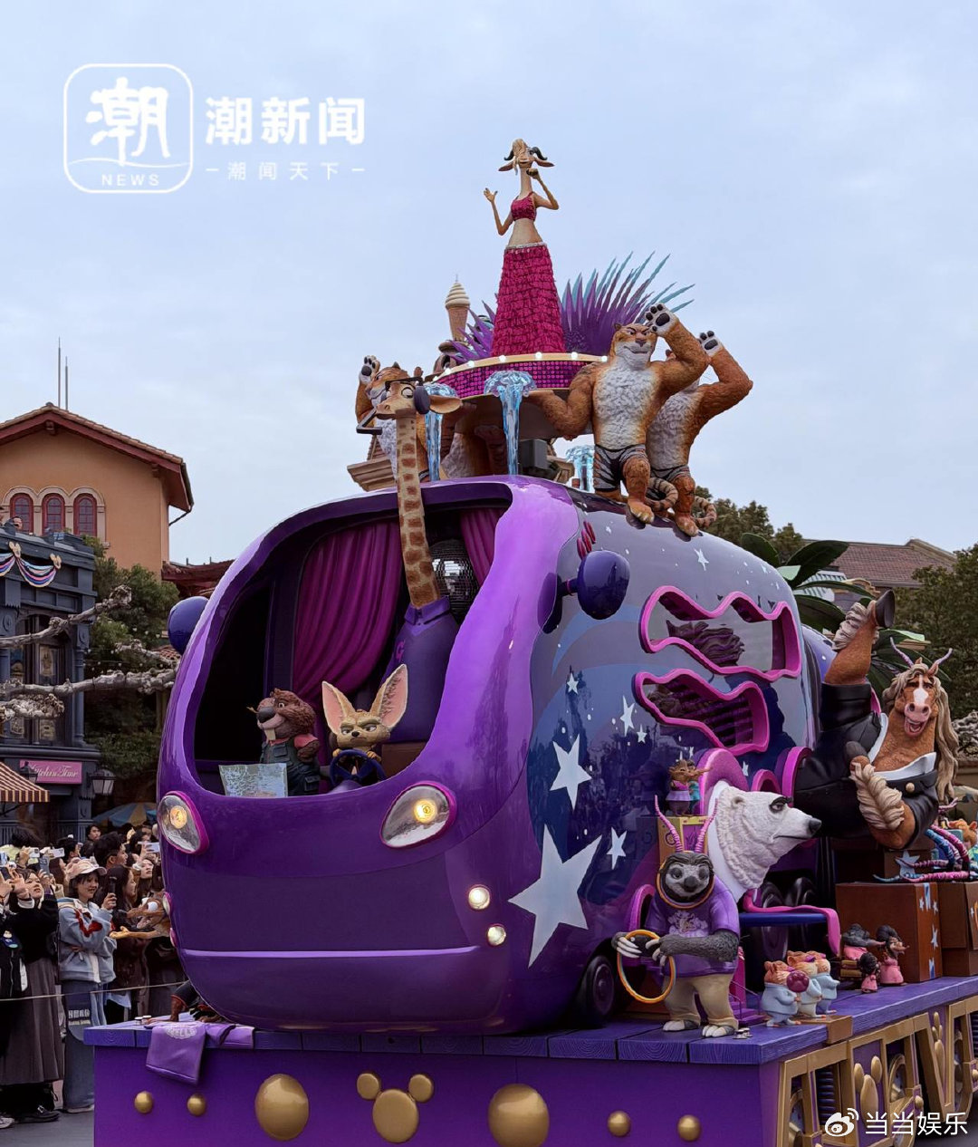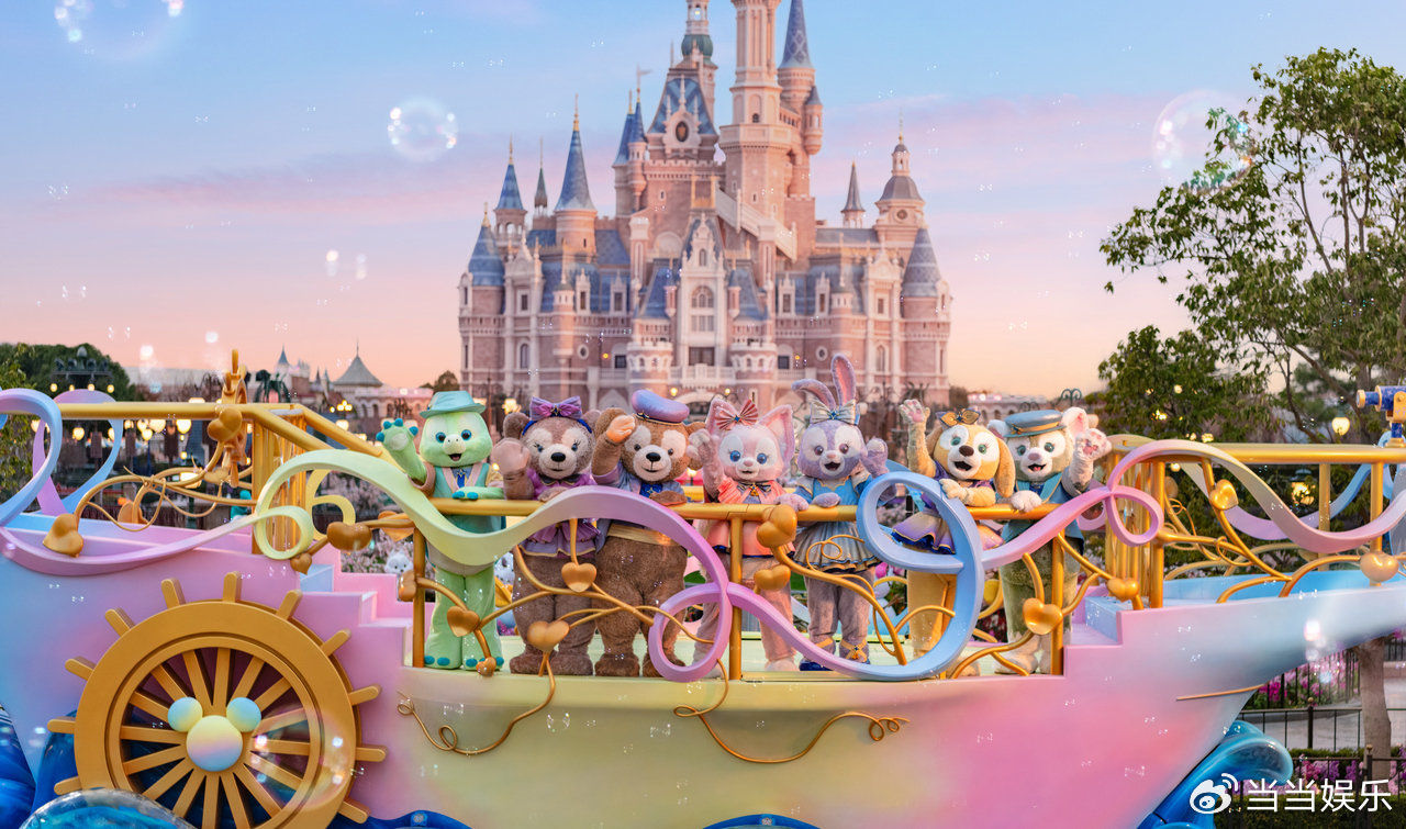 掌舵的达菲站在船尾,身后的许愿星亮闪闪的,拿着望远镜的玲娜贝儿在船头给大家指引方向。达菲,还有它的朋友们,统统都换上了能用于庆典的装扮,立在色彩纷繁且绚烂夺目的花车上,与游客展开互动。这一部分显著是对着达菲家族的粉丝而来的,好多特意前来追玲娜贝儿的粉丝径直举着应援物品一路追随着奔跑。动物城花车首秀这次庆典里,疯狂动物城的花车首次登场亮相,它加入进了“米奇童话专列”的巡游队伍当中。