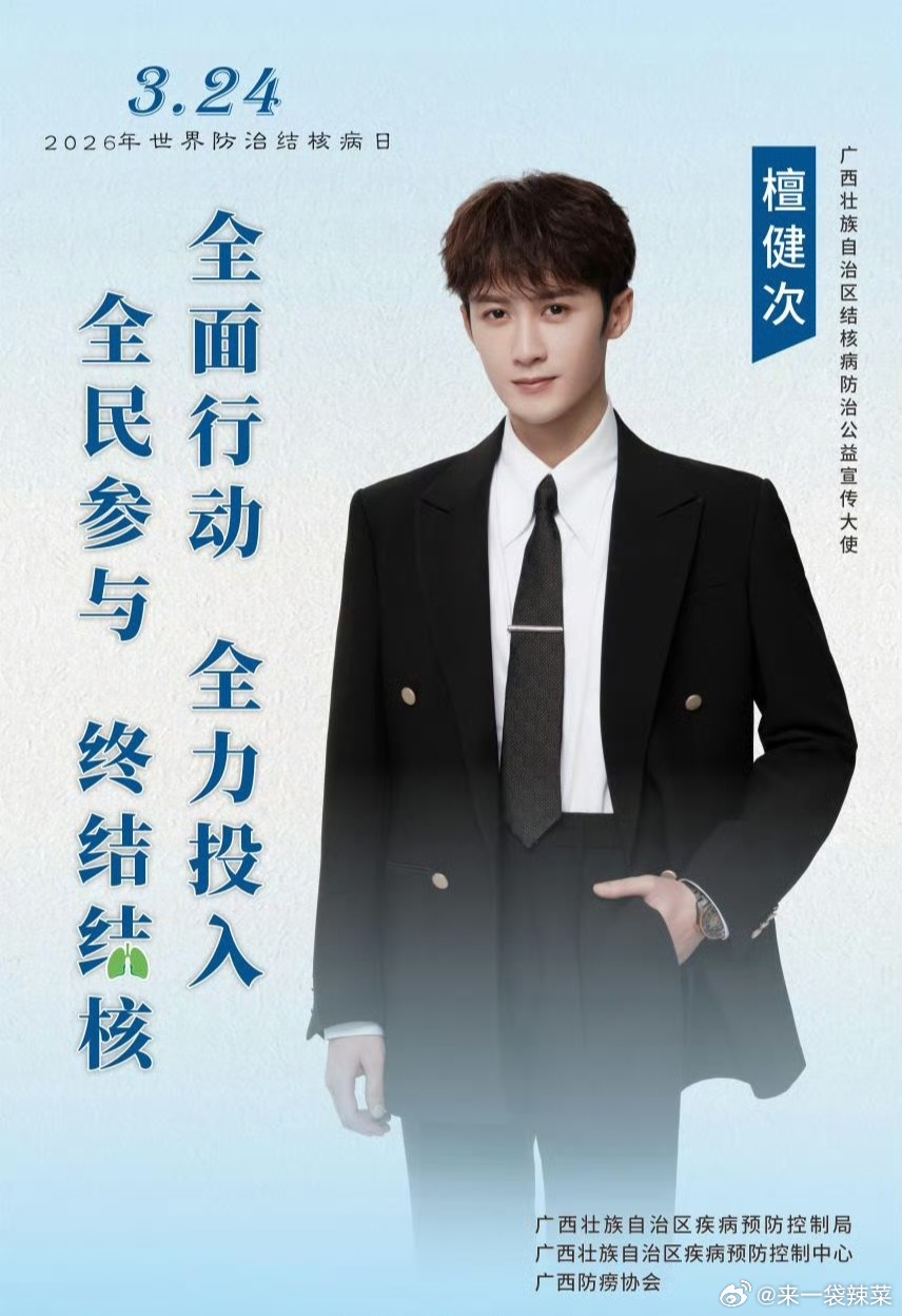 檀健次官宣担任广西壮族自治区结核病防治公益宣传大使,优秀多多檀健次