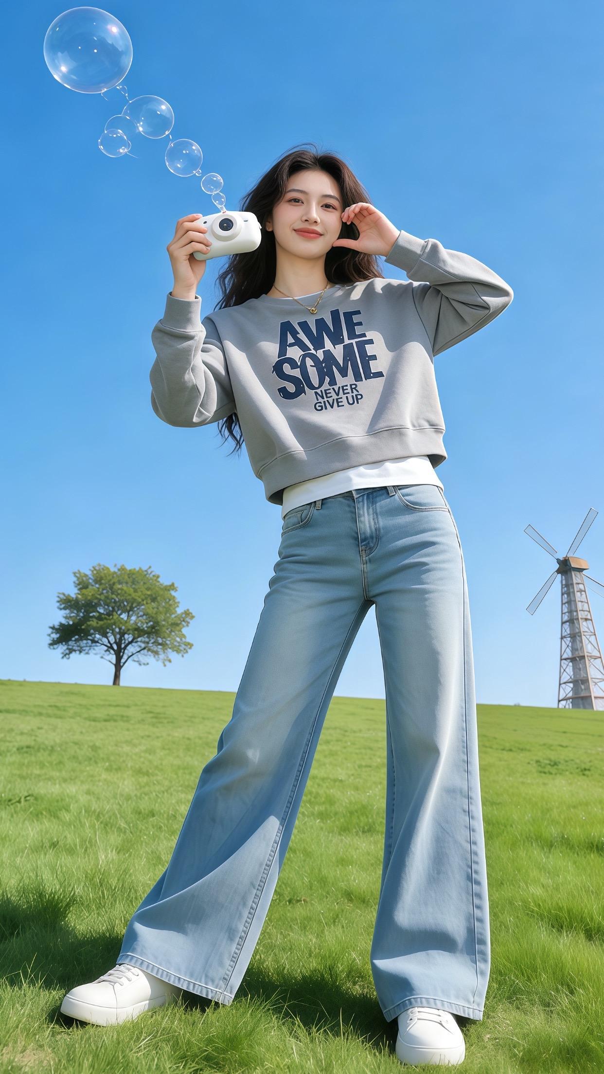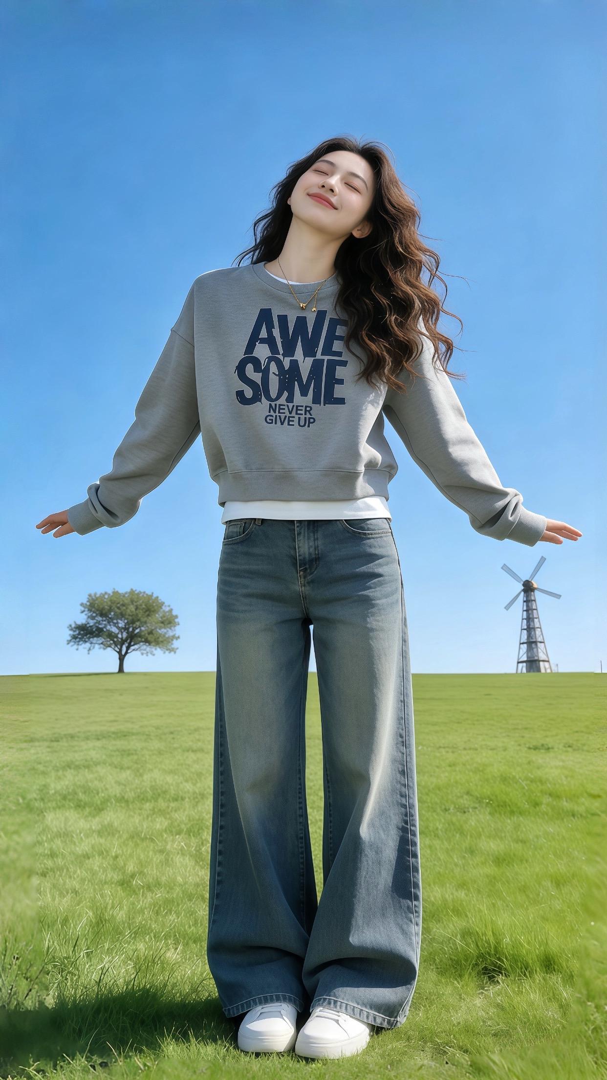 宽松短款女卫衣。