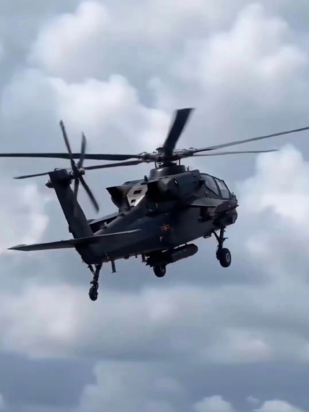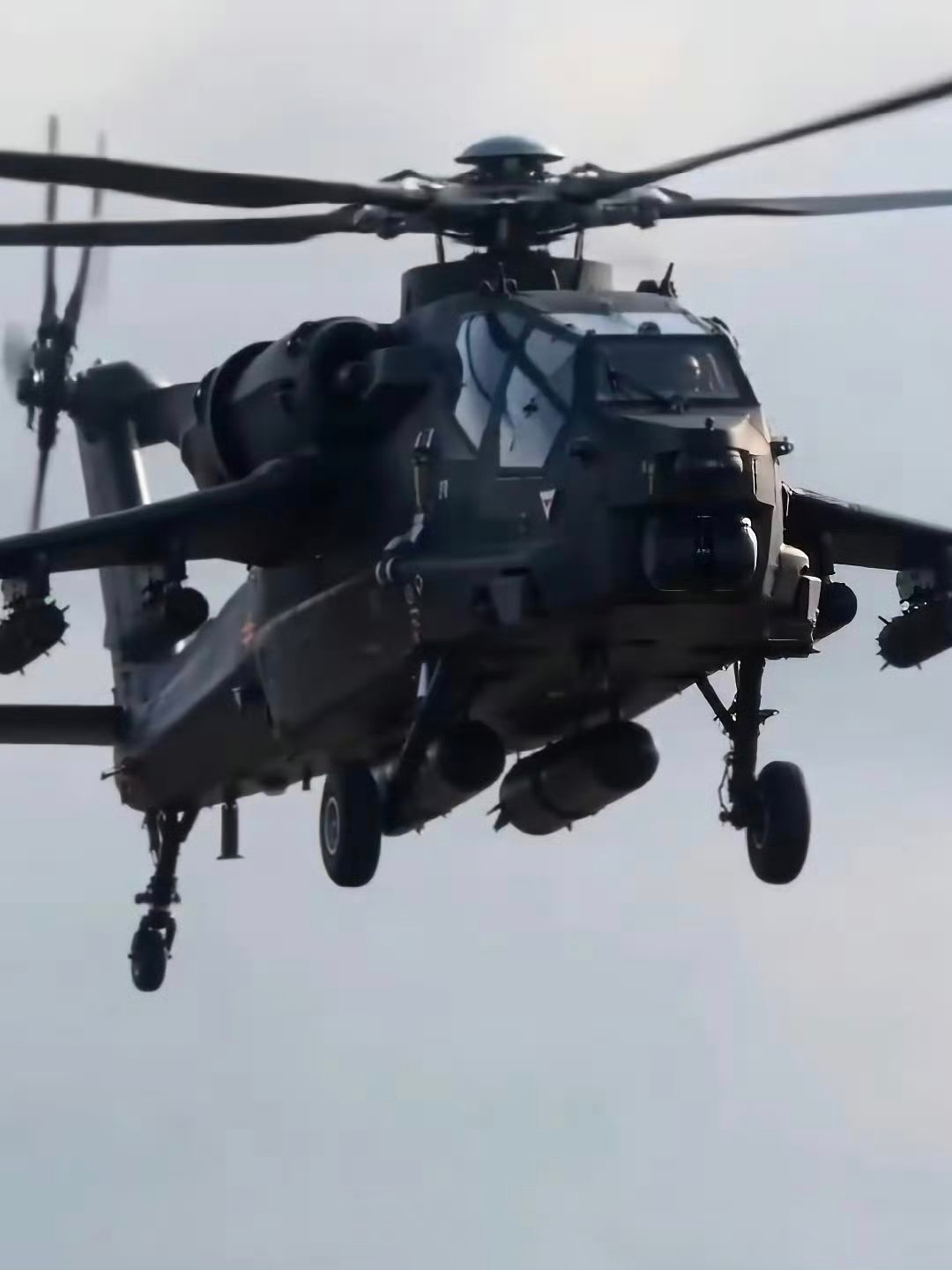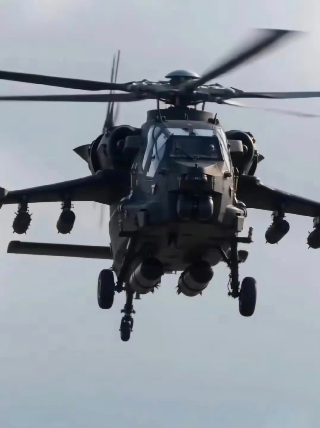更多新武直的图机身下两个挂架增挂了副油箱,让副翼的挂架可以解放出来挂载更多武备,