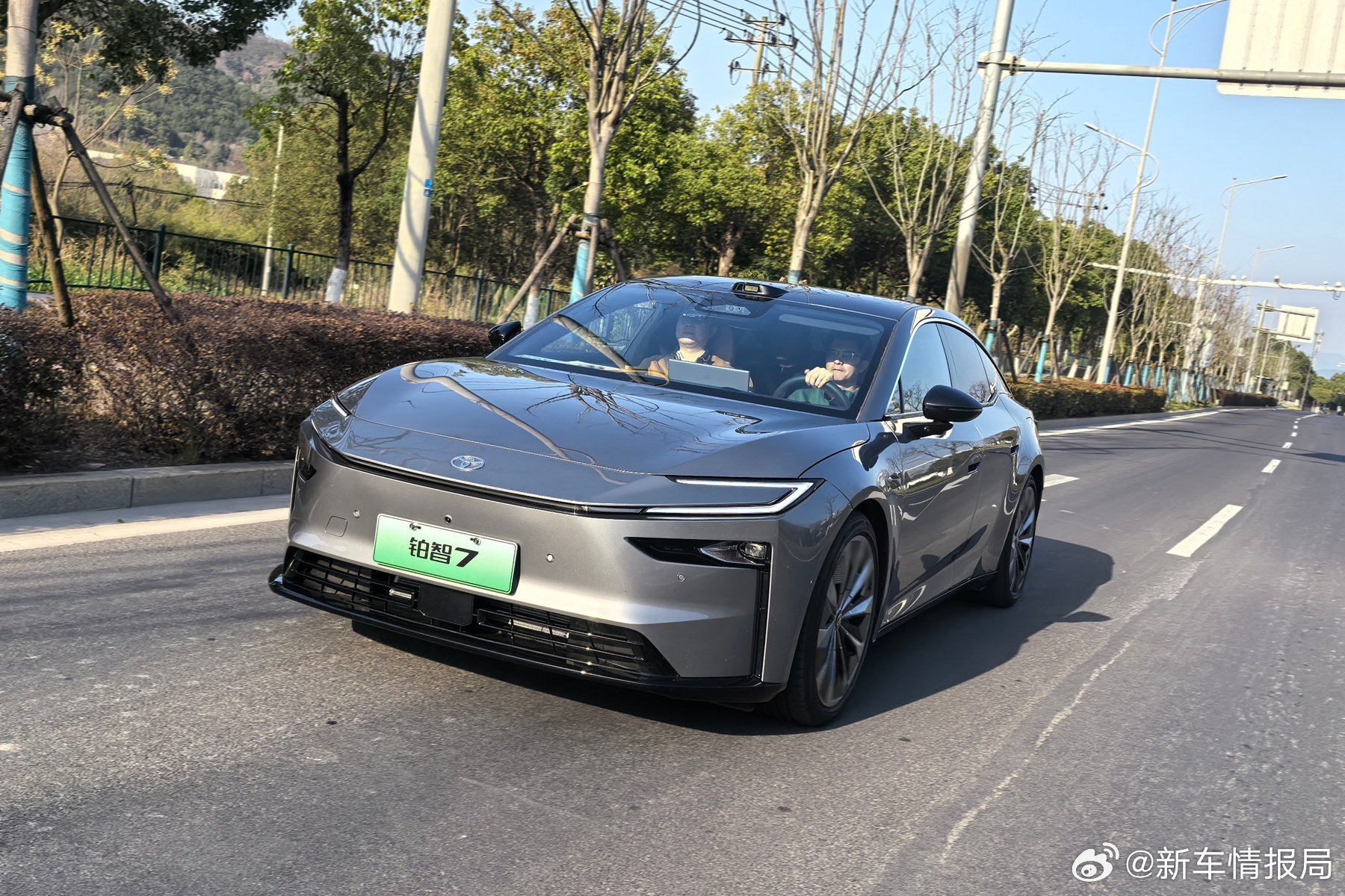 铂智7是广汽丰田新造车体制的产物——看看它的配置单:鸿蒙座舱、Momenta智驾、华为电驱、雷克萨斯+GR底盘调校,该有的全给齐了。它看起来很不丰田,细究之下又处处是丰田的底色,那么开起来,它还有多少丰田味儿呢?新车情报局 1【中国风大轿车】5130mm车长、3020mm轴距,丰田史上最大最宽轿车。尺寸到位,但没往商务感上靠,溜背轿跑线条但其实是为了年轻,它的定位一点也不“商务风”。轮胎方面用到的是普利司通泰然者,光听名字你就该知道他是奔着什么去的了。所以舒适,一定是铂智7要追求的东西。 2【智能驾驶辅助加分】鸿蒙座舱5.0满血版,车载高德地图支持实时路况和道路事件提醒,给智能驾驶辅助“开天眼”,Momenta R6智驾带激光雷达,27个传感器+英伟达芯片。高速NOA、城区领航辅助、全场景泊车都能实现,实际体验也确实对得起第一梯队的水平。而且交付即可用,没有后续订阅费。这配置和新势力比完全不虚。 3【顺滑不晕的驾乘】每秒1000次的毫秒级扭矩实时调整把输出梳理得很平顺。刹车系统来自爱德克斯AHB-G,脚感全段线性,不松懈也不紧绷,快速起步或者急刹车动力、悬架会都会做反应来抵消前倾或者抬头,乘坐不晕车。 4【动力储备足够】207千瓦的华为Drive ONE七合一电驱,电机前段爆发力强,起步瞬间就能感知到出力活泼,快速路巡航时,动力响应迅速又非常线性,中段加速能力更强,高速巡航从容,动力始终能充分供给。全系后驱的设定没问题,因为它追求的不是性能取向,而是高效通行。 5【双腔空悬和SDC的魔法】前双叉臂+后五连杆独立悬架,这是化解颠簸的硬件基础,双腔空悬40mm的可调范围之外还有余量,不止能贴地或者抬升来越障或降低风阻,还可以利用两个气室来增强舒适性表现;SDC以每秒50~100次的频率提前扫描路况,并提前调整悬架/减振器参数,确保车身始终保持稳定姿态。 6【高配底盘体感也高级】硬件给力,雷克萨斯和GR团队联合调校。每秒50-100次扫描路况,提前识别路况对悬架预调整,从被动应对到主动准备,更游刃有余。底盘Q弹紧实,颠簸路面上高级感很足,紧实的底盘让驾乘者都能感觉非常“整”,质感很不错。 7【转向没有“大车感”】捷太格特提供的转向系统,能够根据车速灵活调节传动比,低速时增大转向角传动比,提升转向操控性;高速时减小传动比,增强行驶稳定性。全段呈现偏家用状态,手感轻柔而有弹性。蛇形绕桩时车身稳定,重心靠下的优势被放大,有长车头长车尾的轿车也能够轻松完成绕桩而且姿态不挣扎。丰田铂智7定档3月29日上市