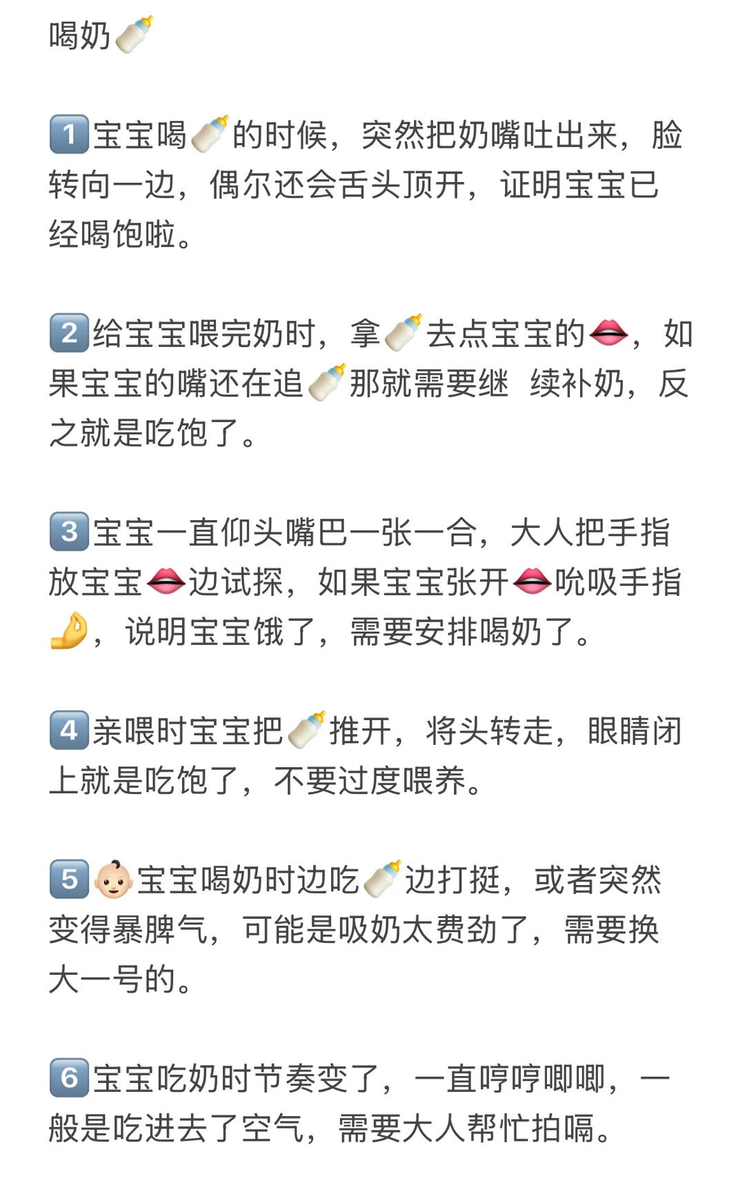1⃣️宝宝喝🍼的时候,突然把奶嘴吐出来,脸转向一边,偶尔还会舌头顶开,证明宝宝已经喝饱啦。