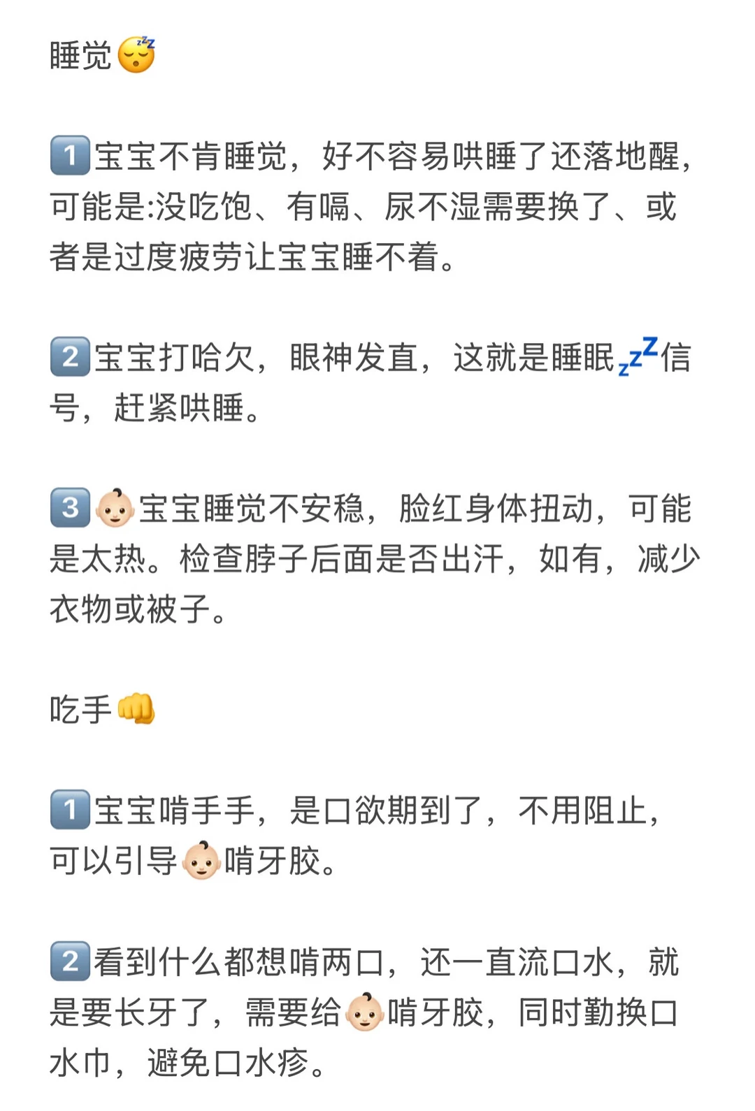 3️⃣👶🏻宝宝睡觉不安稳,脸红身体扭动,可能是太热。检查脖子后面是否出汗,如有,减少衣物或被子。