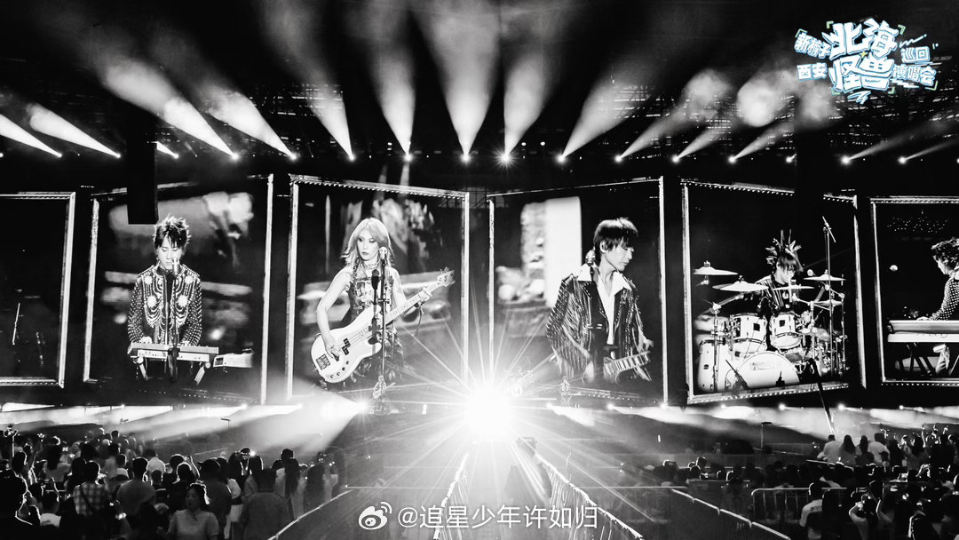 新裤子演唱会舞台剧透新裤子九宫格舞台碎片 合成器、鼓组、贝斯,这些空镜照已经把氛