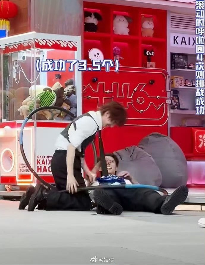 王鹤棣丁程鑫钻呼啦圈太有节目了王鹤棣丁程鑫配合度给到一个夯你好星期六 看完直接笑