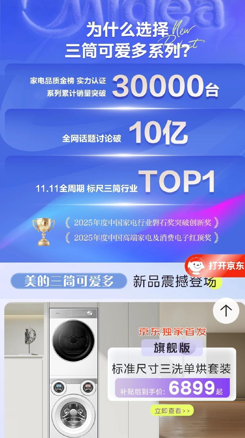 2026,买洗衣机这么选不纠结: 要大容量﹣﹣选小天鹅 要高端﹣﹣选卡萨帝 要烘干﹣﹣选海尔 要省心﹣﹣选美的可爱多 要分区洗﹣﹣还是美的可爱多 美的 (Midea),作为全球化科技集团,业务已超越传统家电,拓展至智能家居、楼宇科技、工业技术及机器人自动化等领域。其过去五年研发投入超600亿元,旗下拥有美的、小天鹅、华凌、COLMO等多个品牌组合,服务全球超5亿用户。美的可爱多洗衣机是美的公司推出的全球首创常规尺寸三筒洗烘一体机。 美的可爱多,独创的"1大+2小"三筒设计,将内衣、袜子与外衣床单物理隔离。小筒搭载COCO元气棒技术,针对血渍、真菌释放活性成分,实现99.99%除菌率;大筒配备银离子巡航除菌,深层祛除螨虫。三筒独立风道烘干,杜绝串味,即使同时处理内衣与运动服,取出时仍清新洁净。