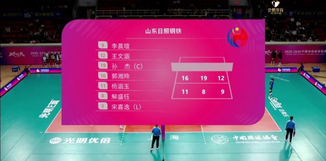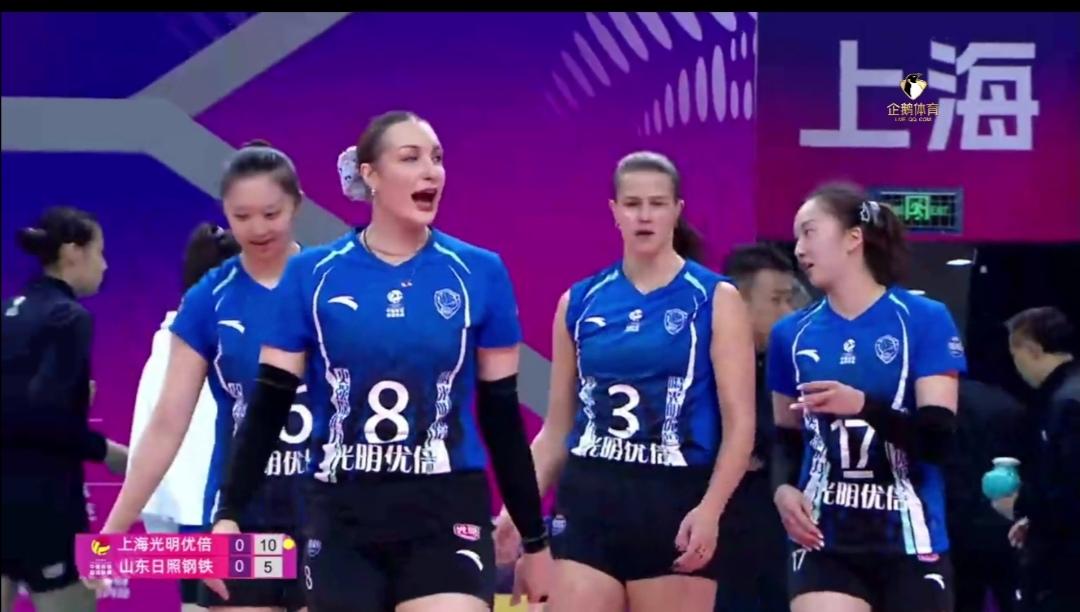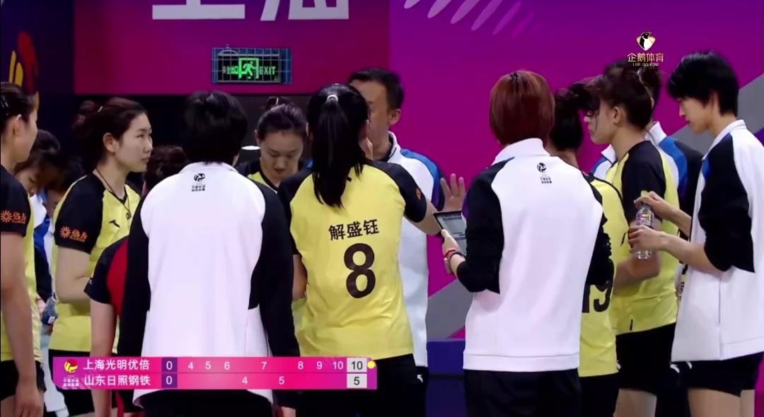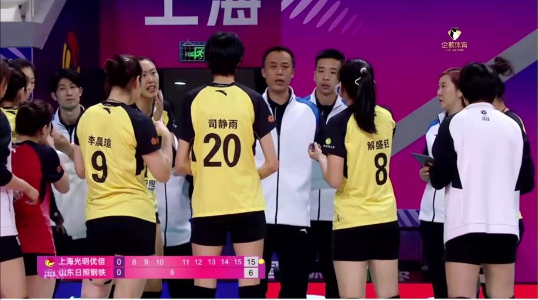 上海光明优倍半决赛有望两连胜,晋级决赛! 第二回合半决赛,上海光明优倍迎战山东日照钢铁。 上海队继续全主力首发! 山东队自由人王梦洁换成宋嘉逸了! 山东队5-10落后首次暂停,6-15第二次暂停了! 第一局,上海队25-13大比分领先! 山东日照钢铁兇多吉少了!