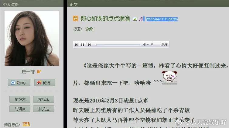 姚晨离婚的消息一出来,我就知道,凌潇肃和唐一菲那点陈年旧事又要被翻出来了。 翻来覆去还是那套老剧本:凌潇肃婚内喊“唐一菲是我的女人”没人提,唐一菲当年“潇肃欧巴”叫得比谁都甜也没人提,倒是巨春雷那篇连张截图都没有的小作文,又被当成尚方宝剑祭出来了。 我就纳闷了,凌潇肃自己发微博承认的那条,可是白纸黑字、时间戳清清楚楚。连小三都没来得及否认,他自己先认了。这种操作放今天,哪个流量小生不被骂到退圈?可偏偏到他这儿,反而成了“真性情”。 而姚晨被全网讨伐,凭的就是巨春雷那篇“据凌潇肃说”。没照片、没录音、没截图,就这么一篇零实锤的小作文,愣是把婚内先公开新欢的人洗成了“受害者”。十五年过去了,谁在演戏、谁在说真话,一眼就能分辨了。